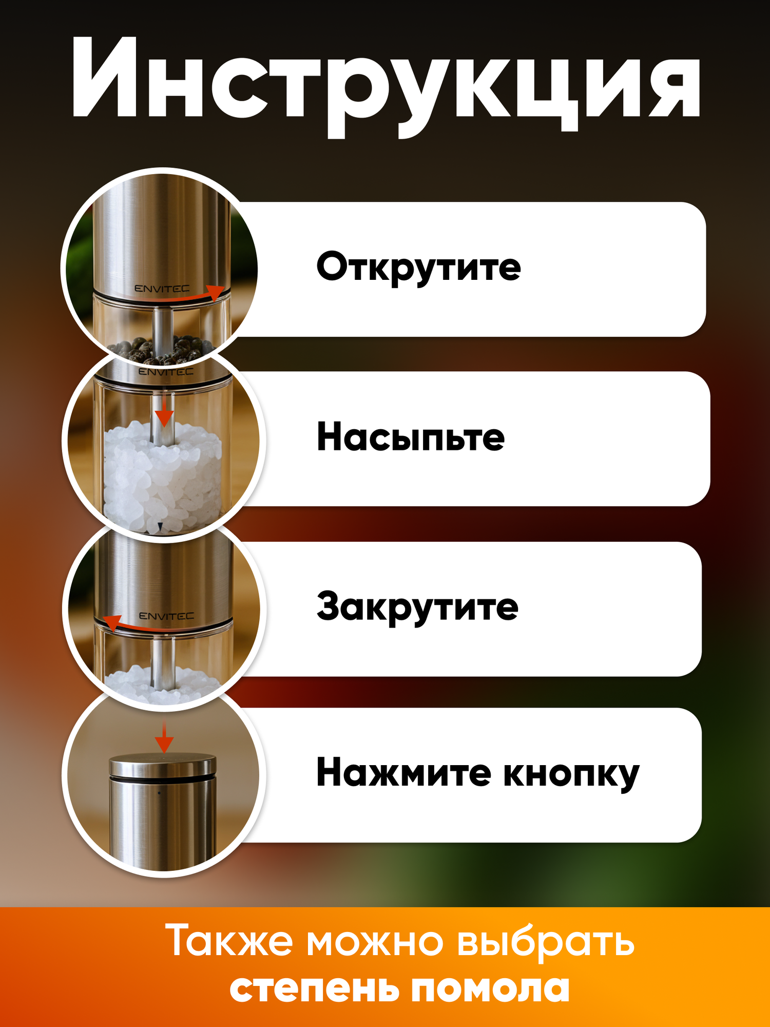 Электрическая мельница EnviTec, для специй, металл, стекло, пластик, серебристая интересное: