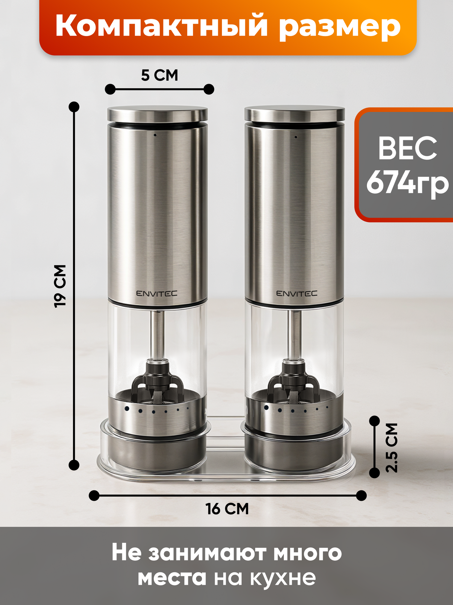 Мельница для специй электрическая EnviTec Max 15, прочный материал, стильный дизайн
