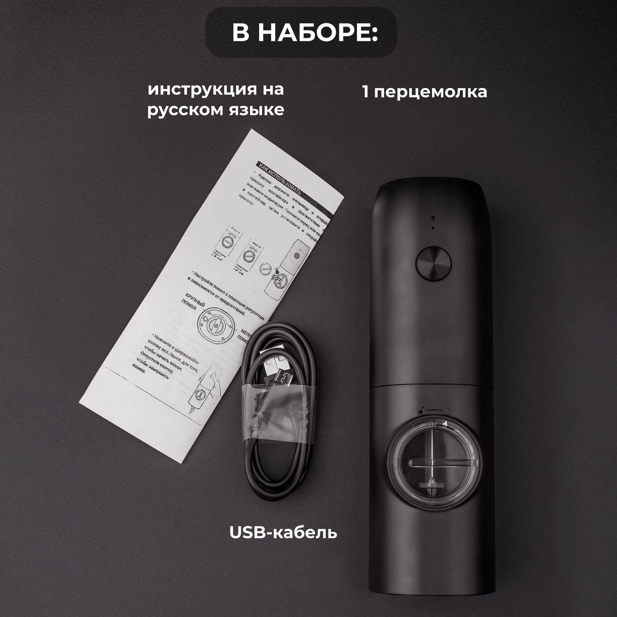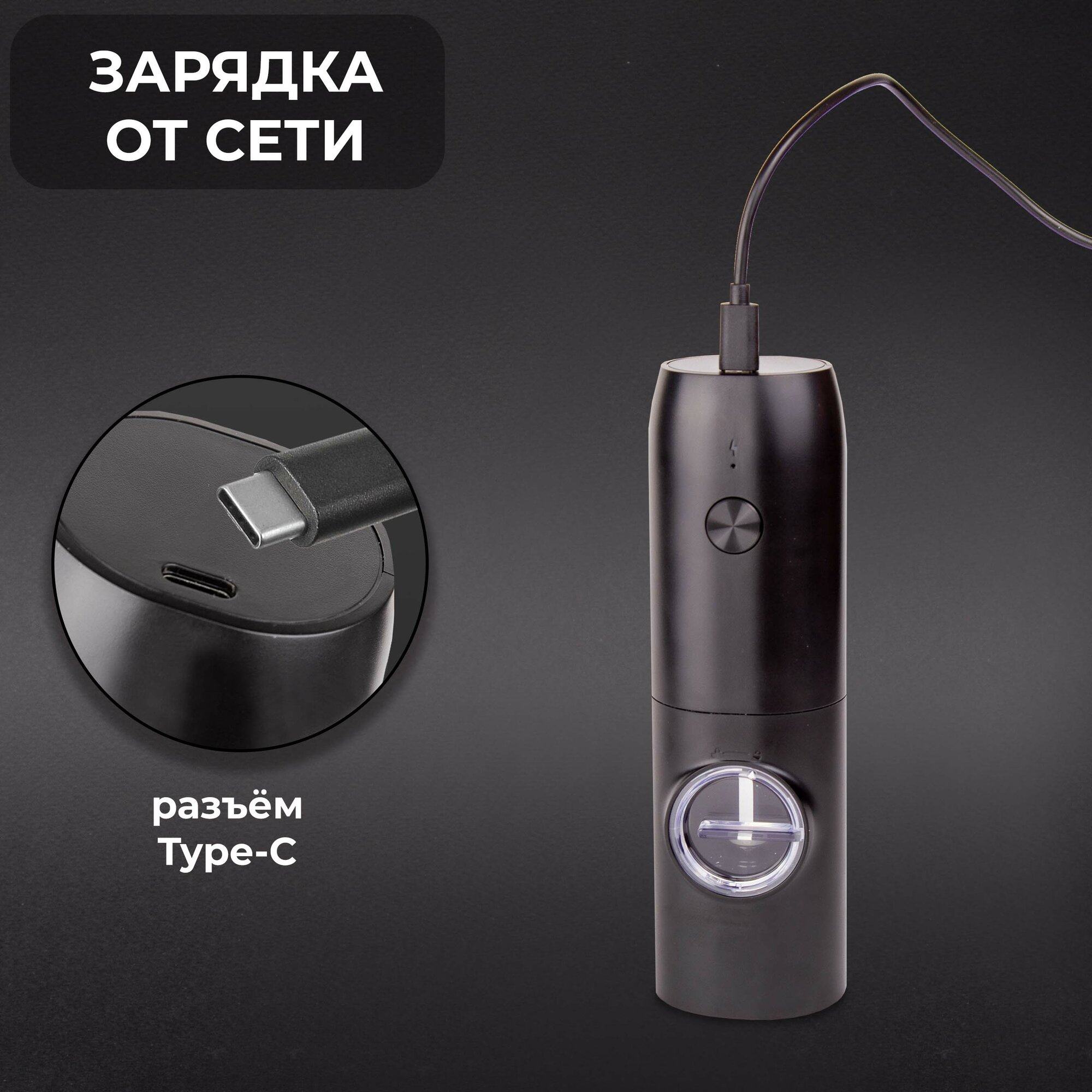 Купить Мельница для специй электрическая черная с подсветкой, плавной регулировкой помола и аккумулятором