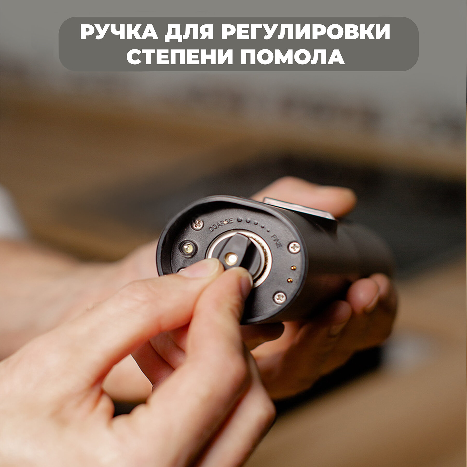 Мельница для специй электрическая черная с подсветкой, плавной регулировкой помола и аккумулятором интересное: