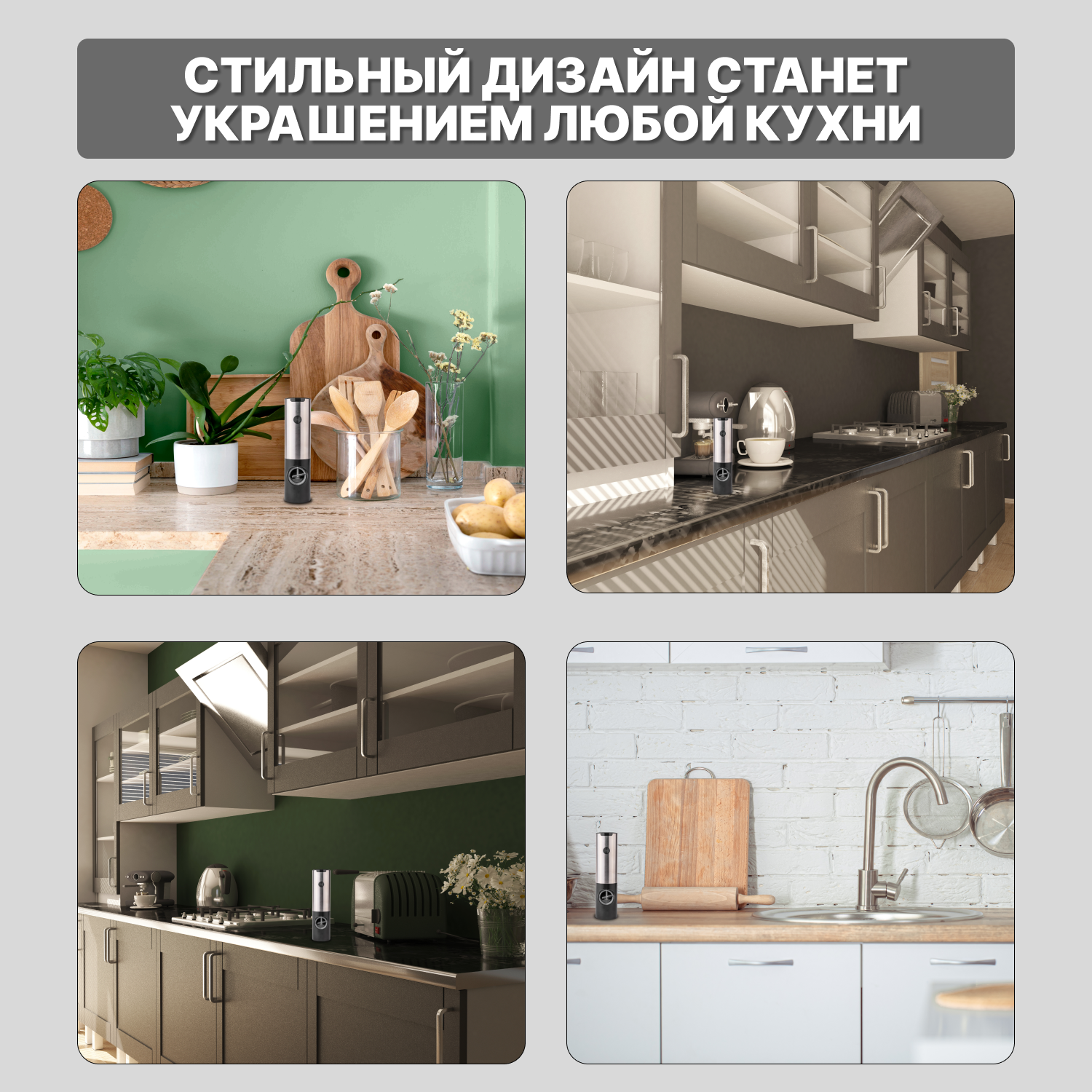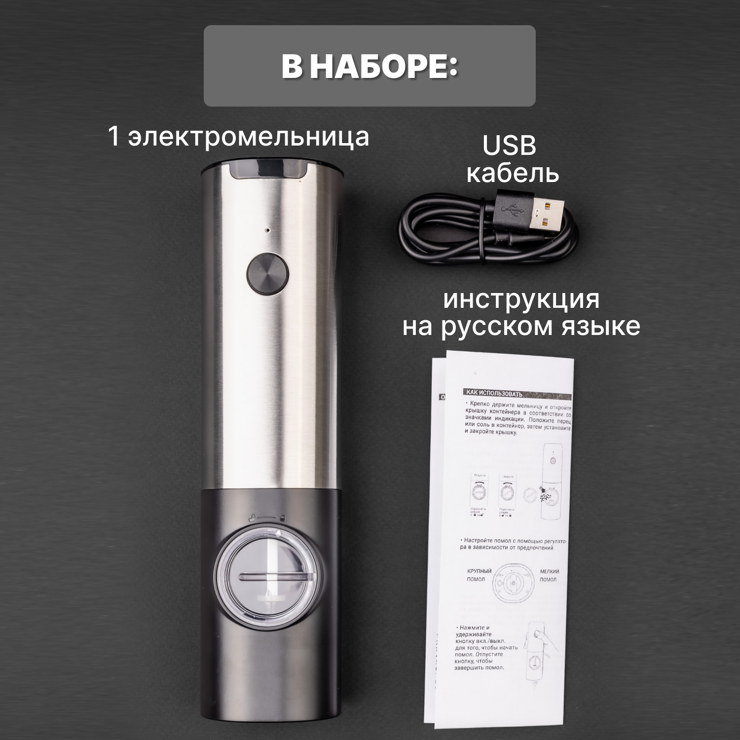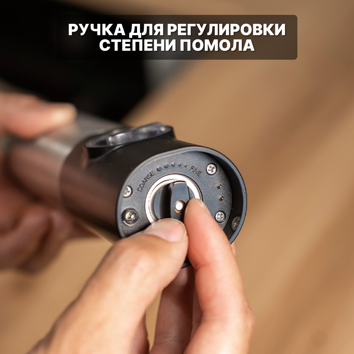 Мельница для специй электрическая гравитационная с подсветкой, плавной регулировкой помола и аккумулятором
