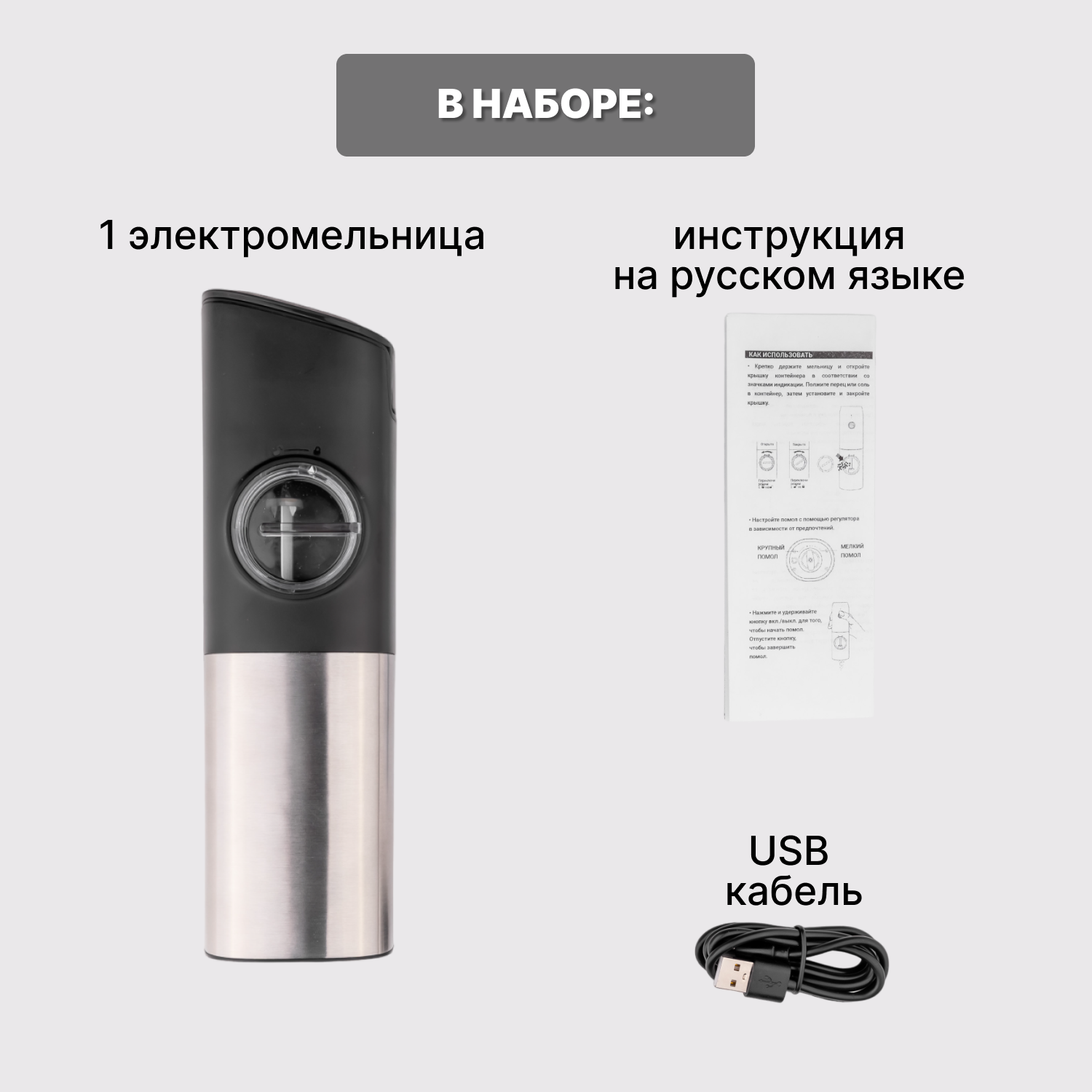 Мельница для специй электрическая с подсветкой, плавной регулировкой помола и аккумулятором