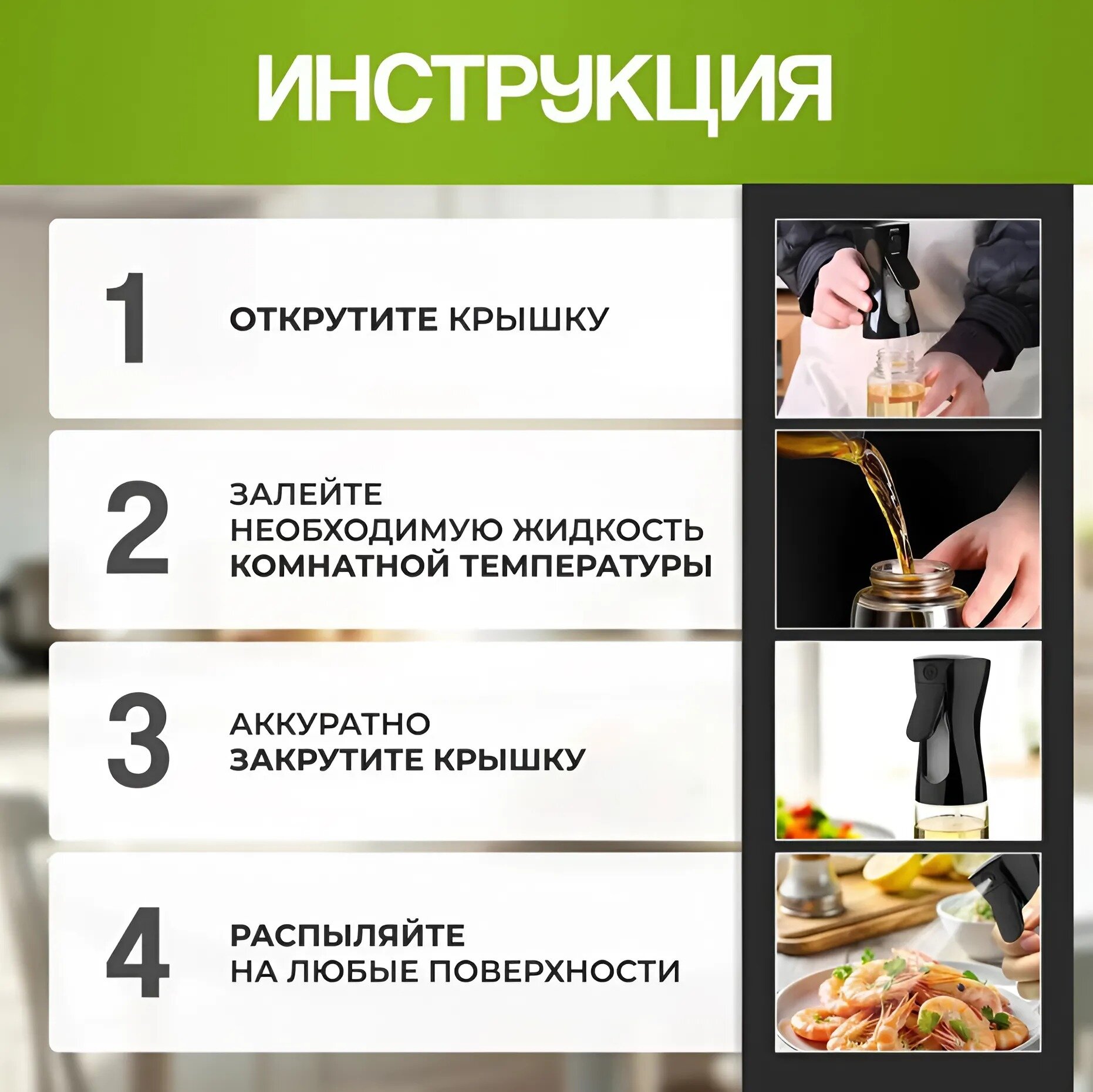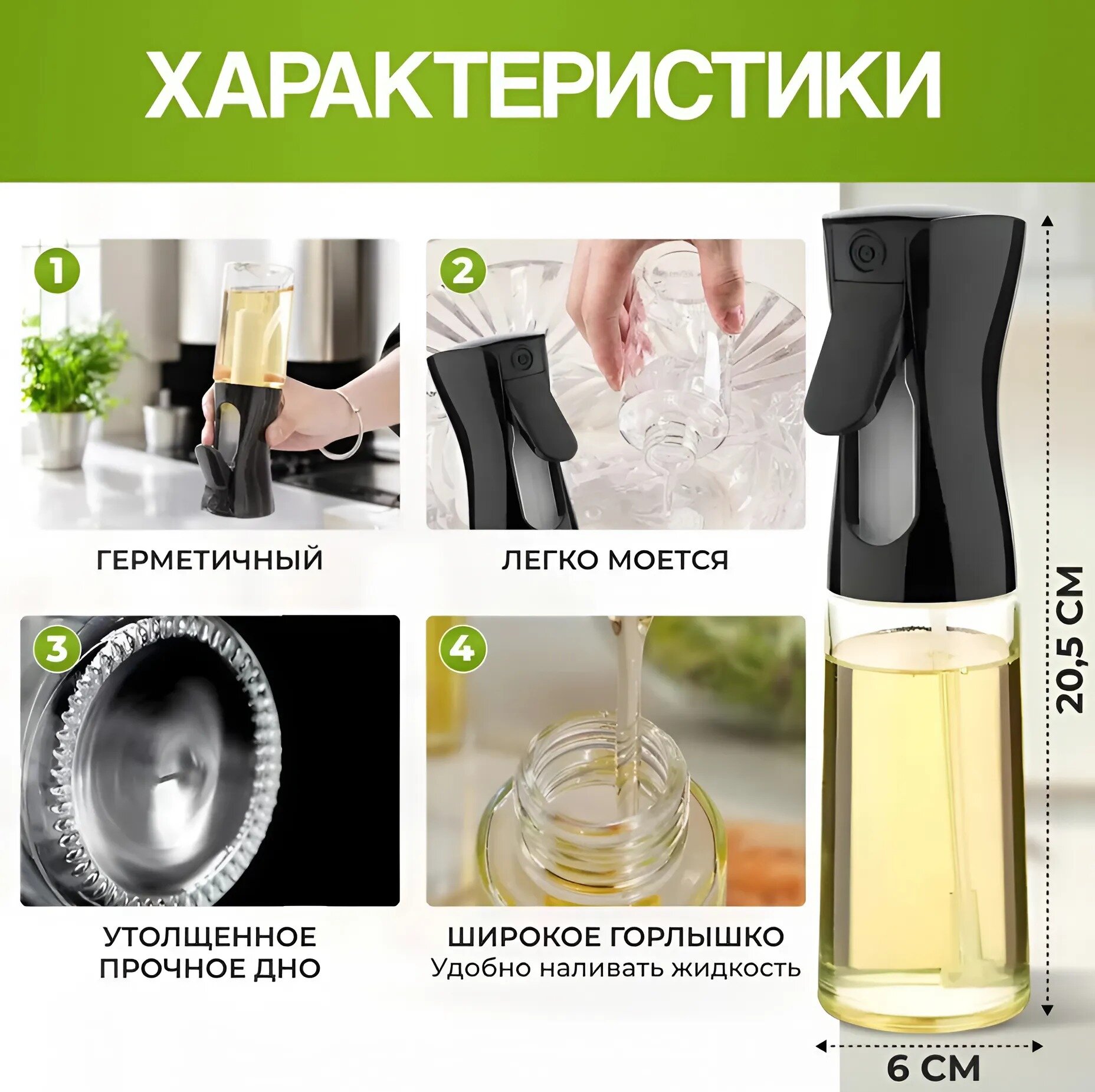 Распылитель , спрей дозатор для уксуса , масла, вина, лимонного сока 200мл, черный интересное: