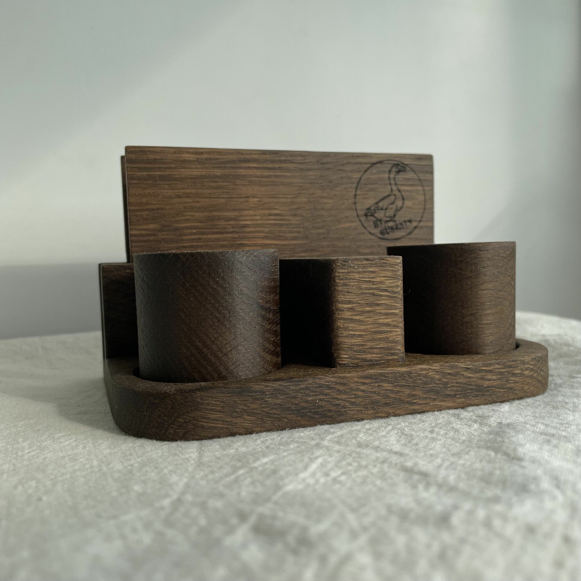 Набор для специй с салфетницей из морёного дуба 016-10 маслом