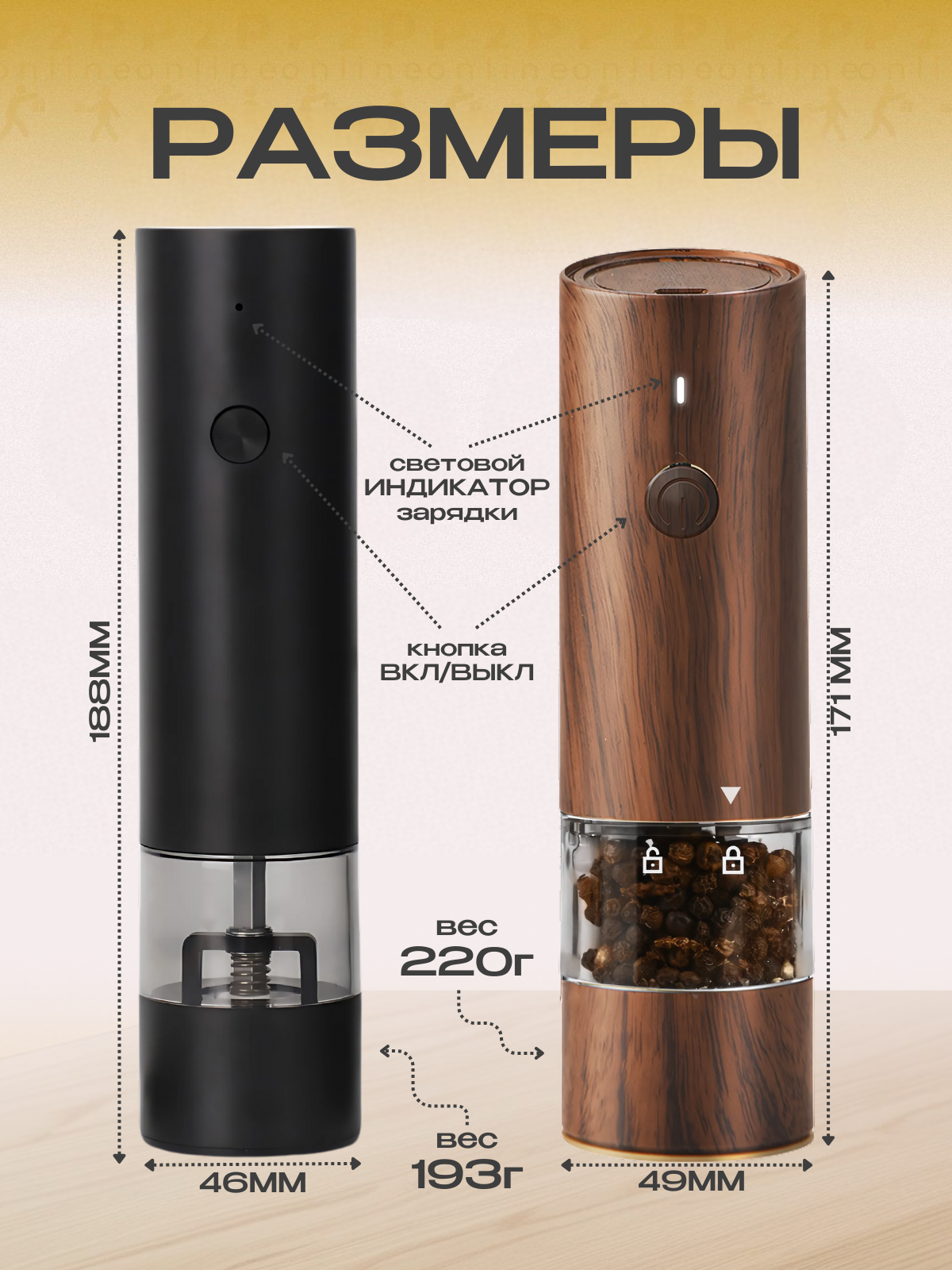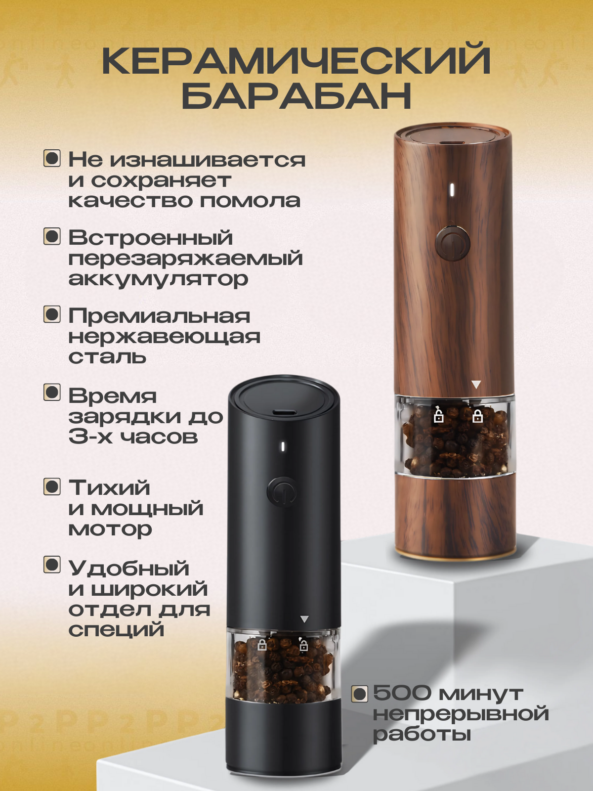Мельница для специй, керамические жернова, электрическая, регулировка помола. 2шт. Цвет Под дерево