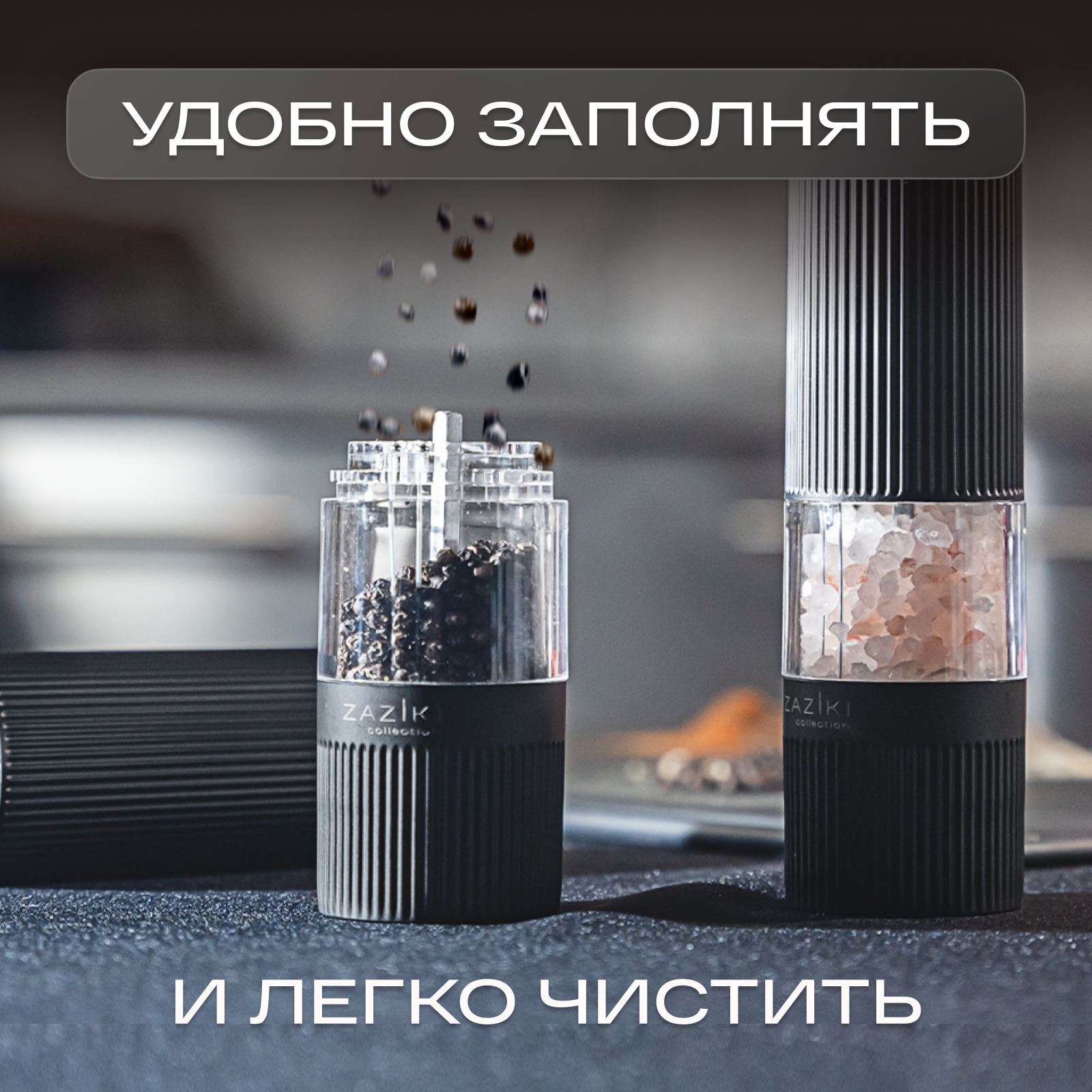 Мельница перечница для специй и соли Zaziki электрическая на батарейках интересное: