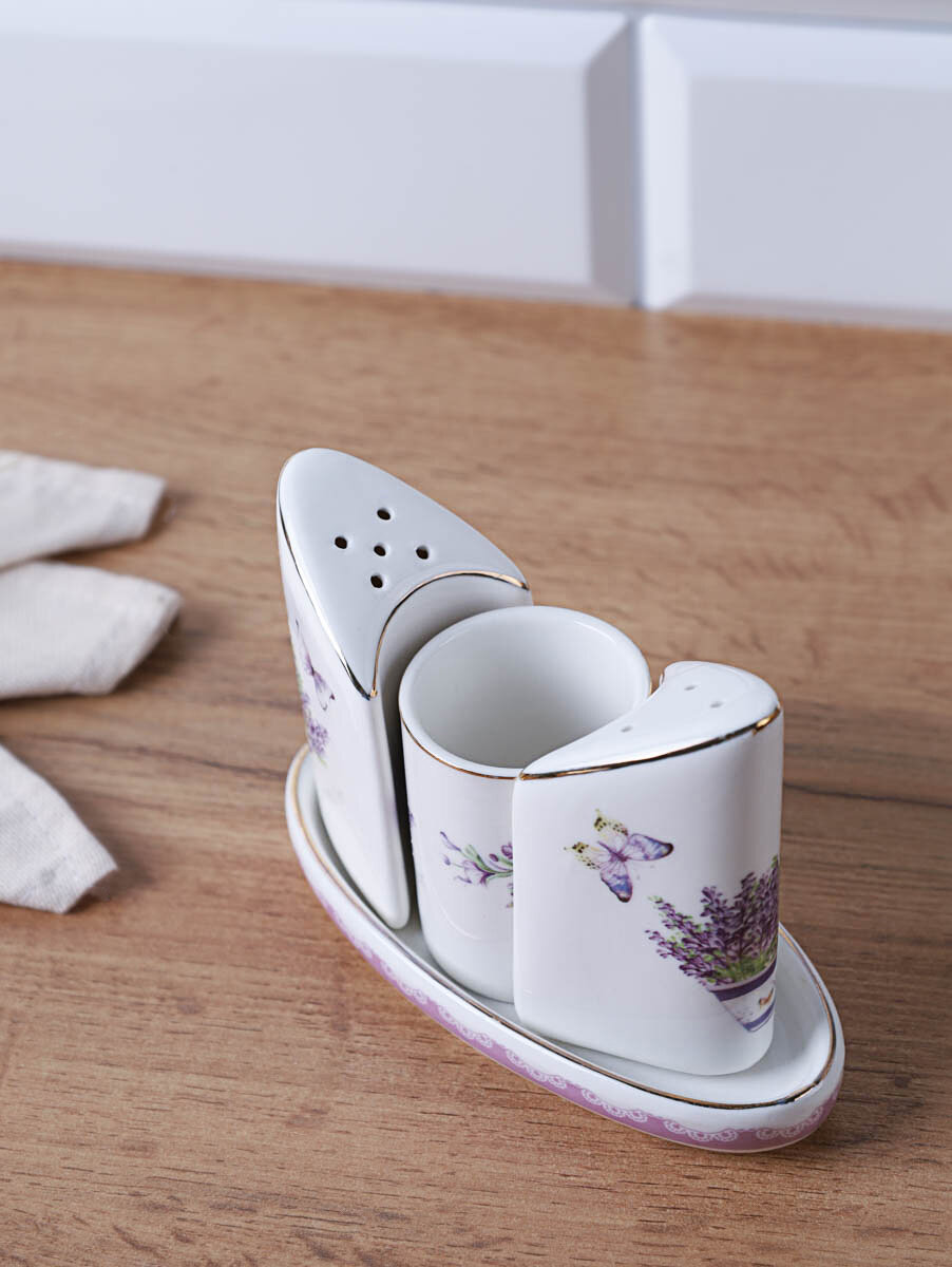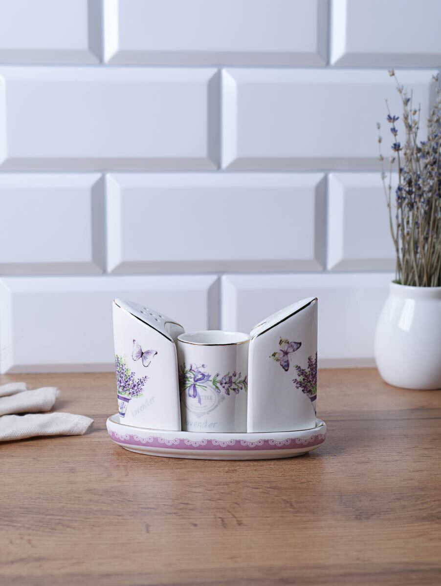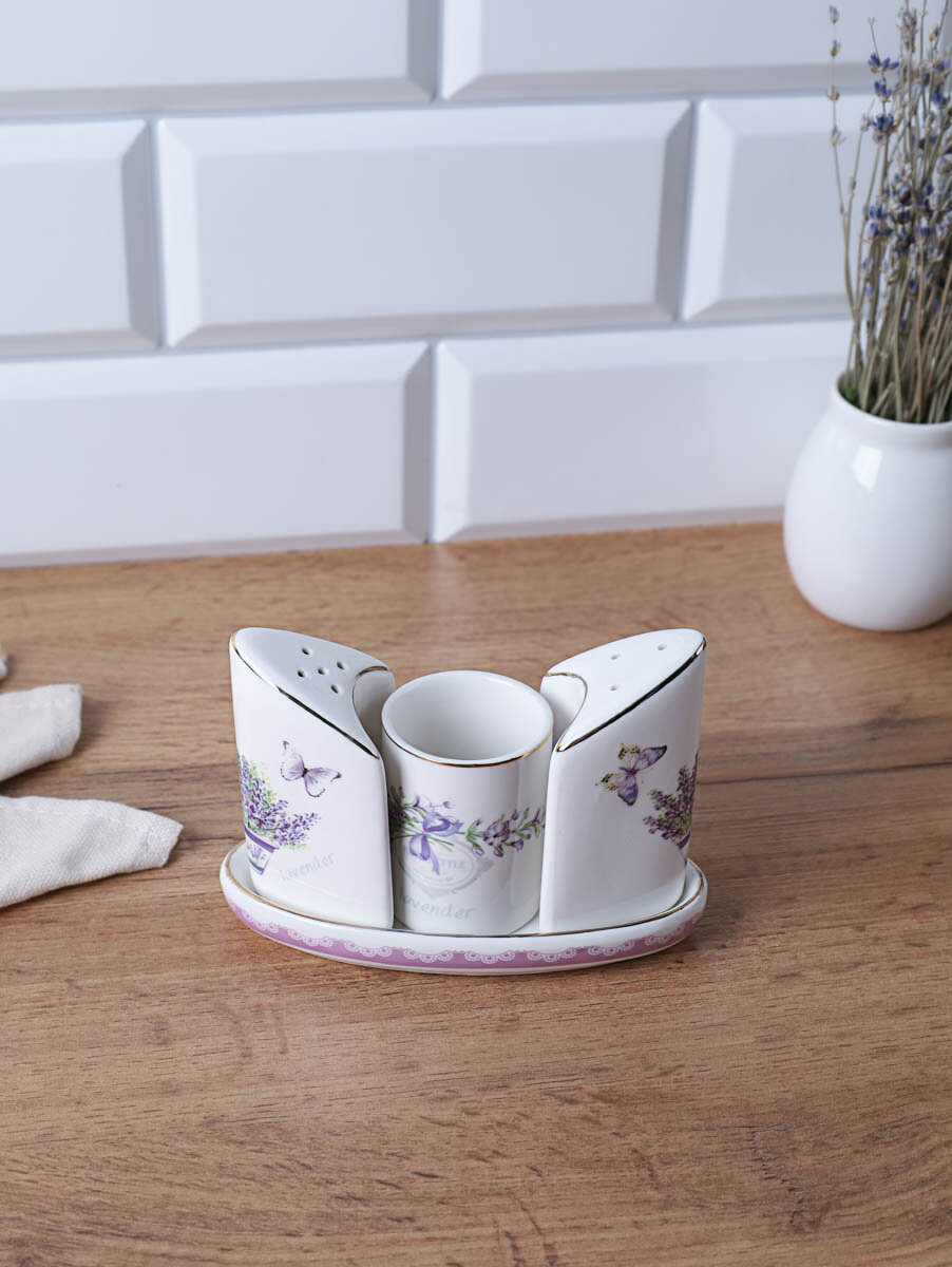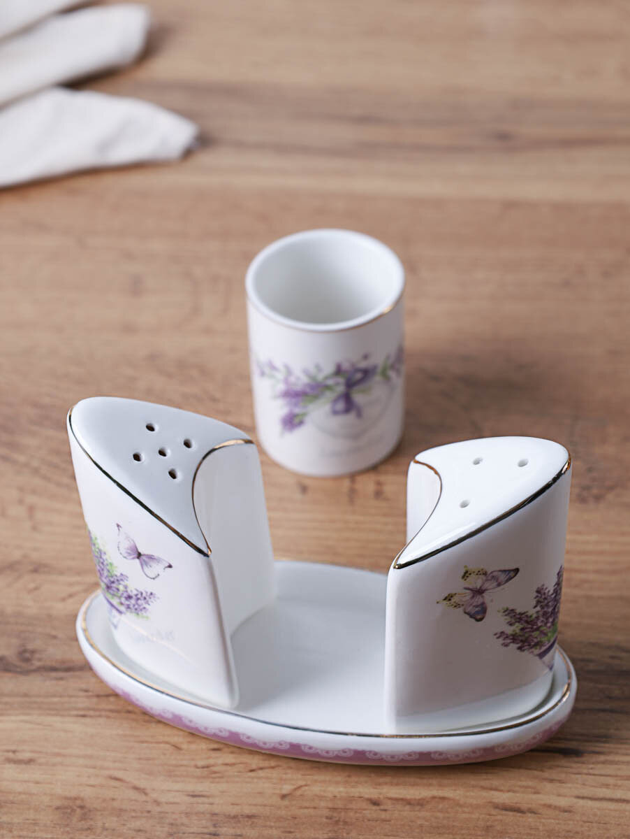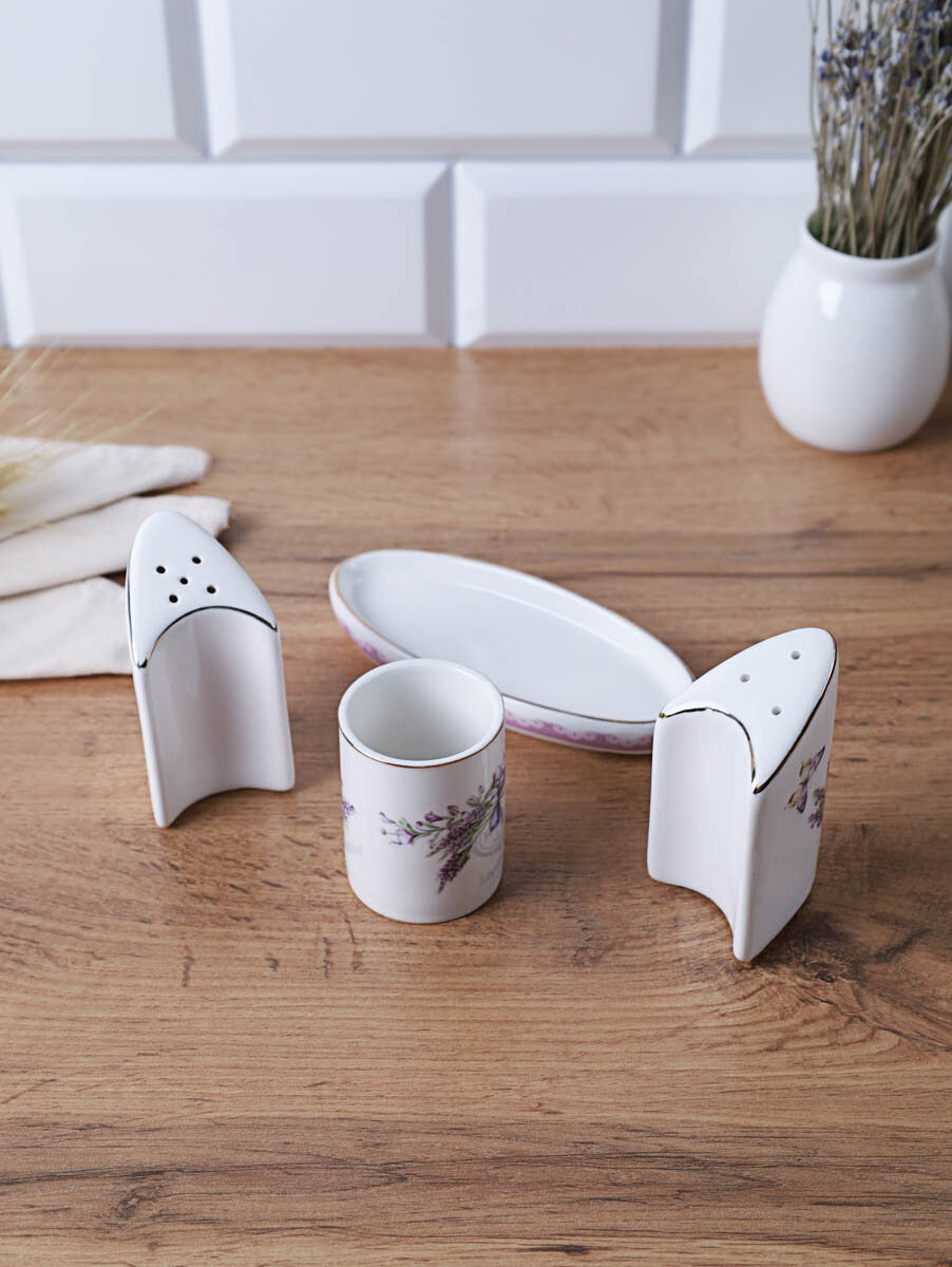 Набор для специй White Lily "Лаванда", костяной фарфор, 4 предмета, солонка, перечница интересное: