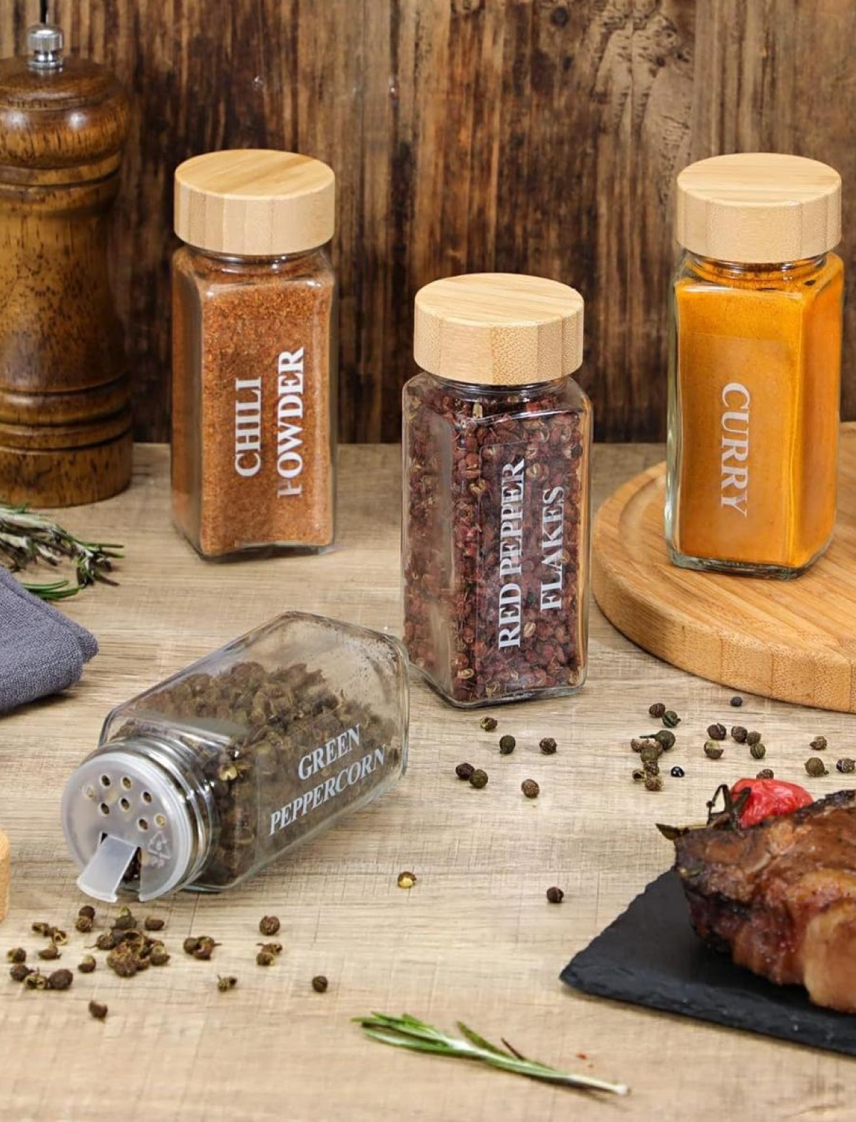 Набор баночек для специй HomeGoods, стекло, бамбуковая крышка, дозатор на 2 варианта помола, 120 мл, 12 шт.
