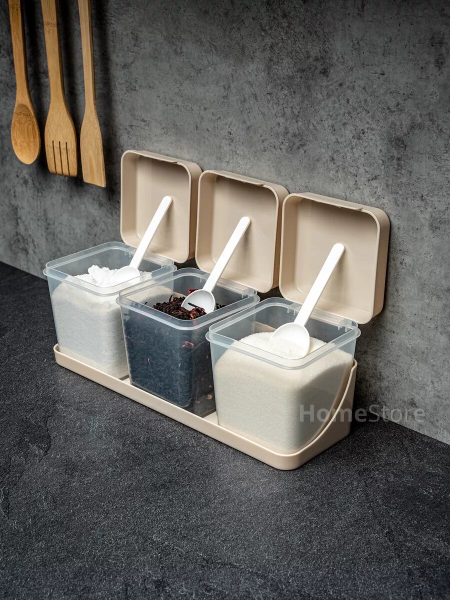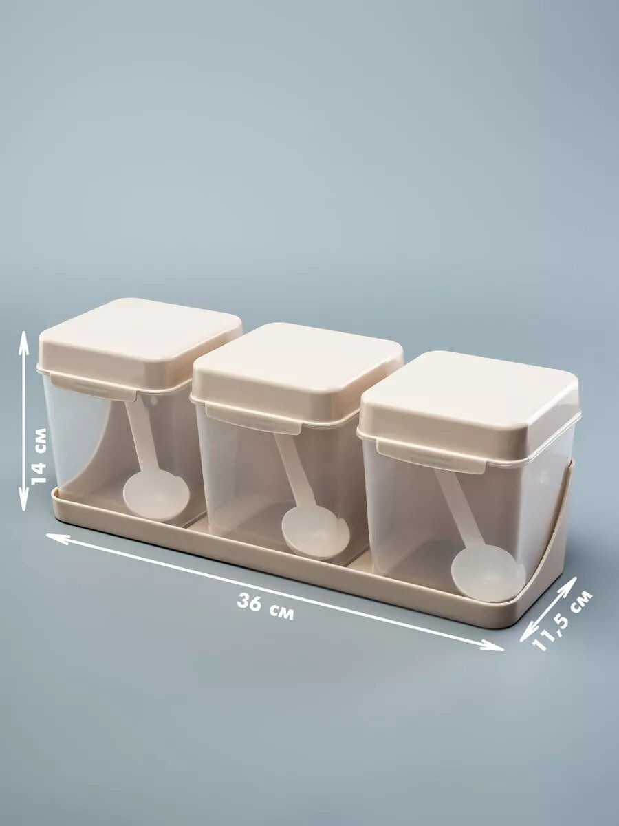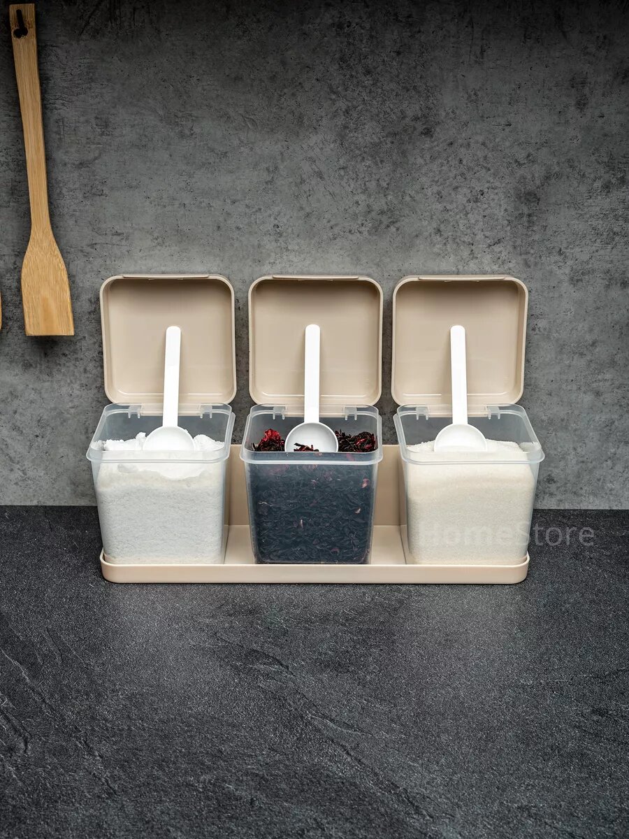 Набор емкостей, банок для специй, сахара и соли, на подставке, с ложкой, 1,2 л интересное: