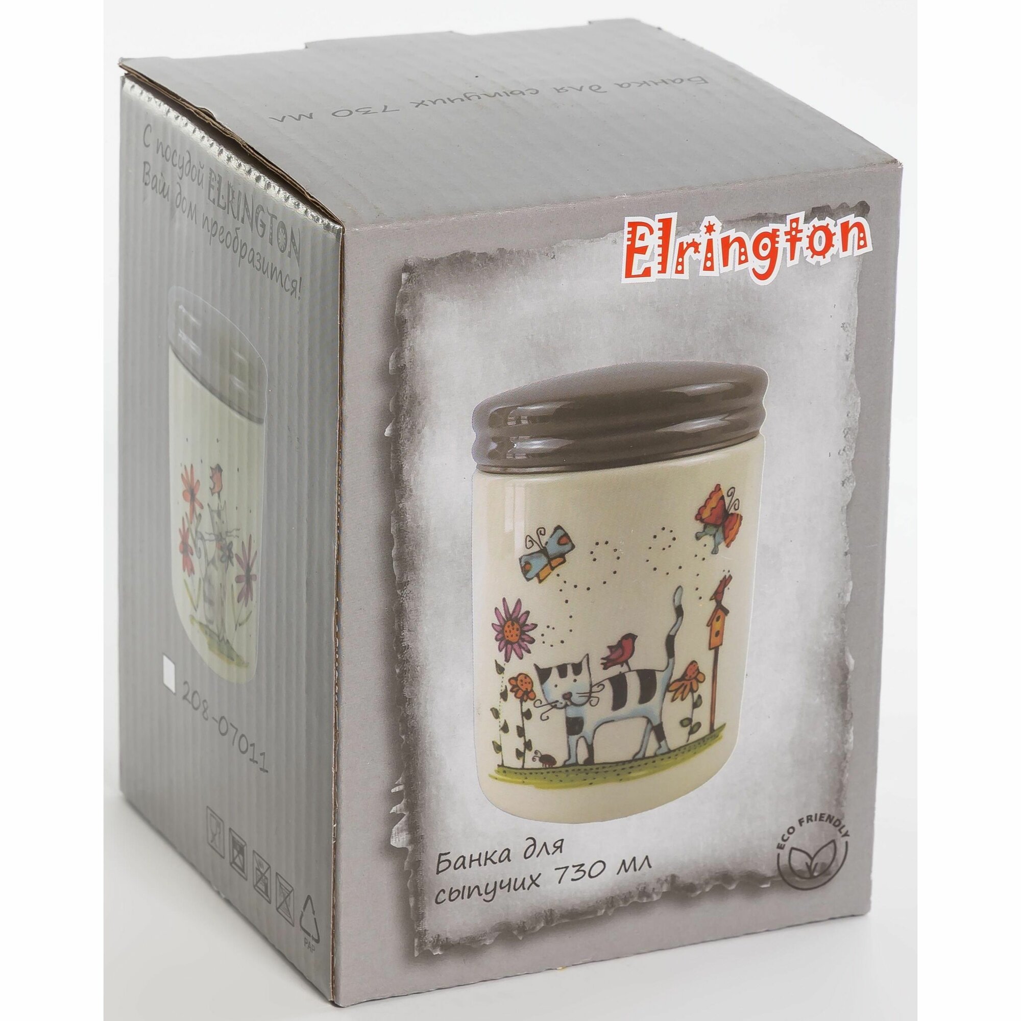 Банка для сыпучих продуктов Elrington "Серый Кот", керамика, 730мл