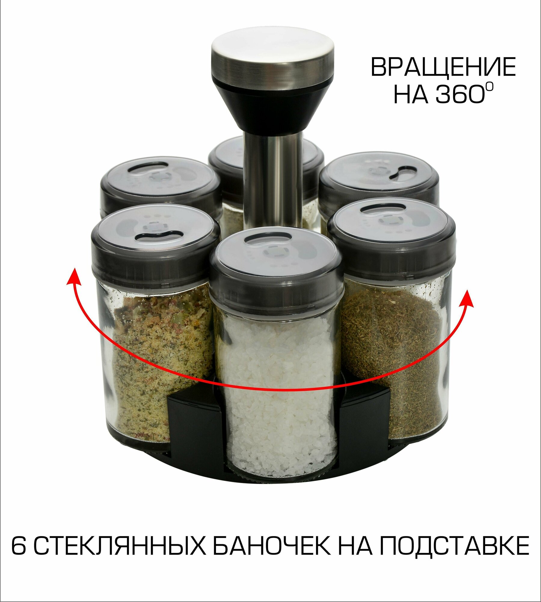 Набор для специй на подставке со стеклянными баночками, 6шт. интересное: