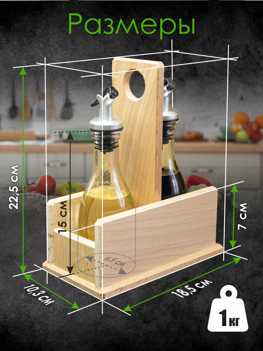 Набор под масло и соусы в деревянной подставке MJADO 2 бутылочки интересное: