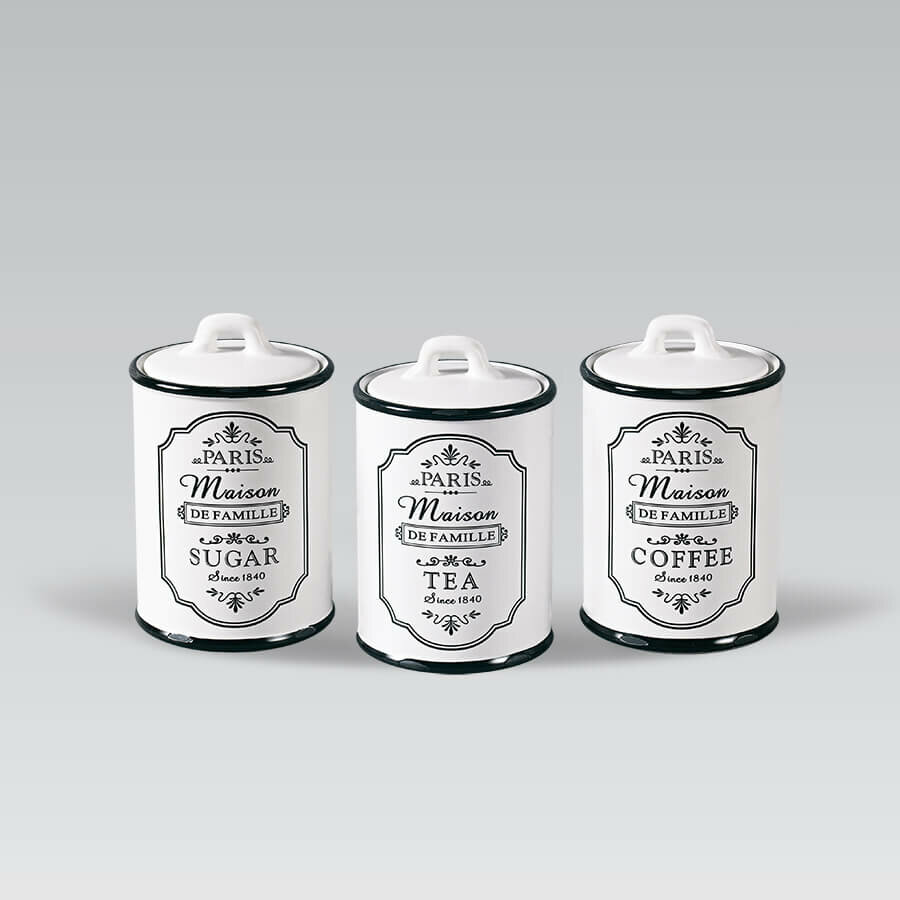 Купить Набор емкостей Maestro MR-20030-03CS керамика "Paris Maison" для чая, кофе, сахара, 3шт в комплекте
