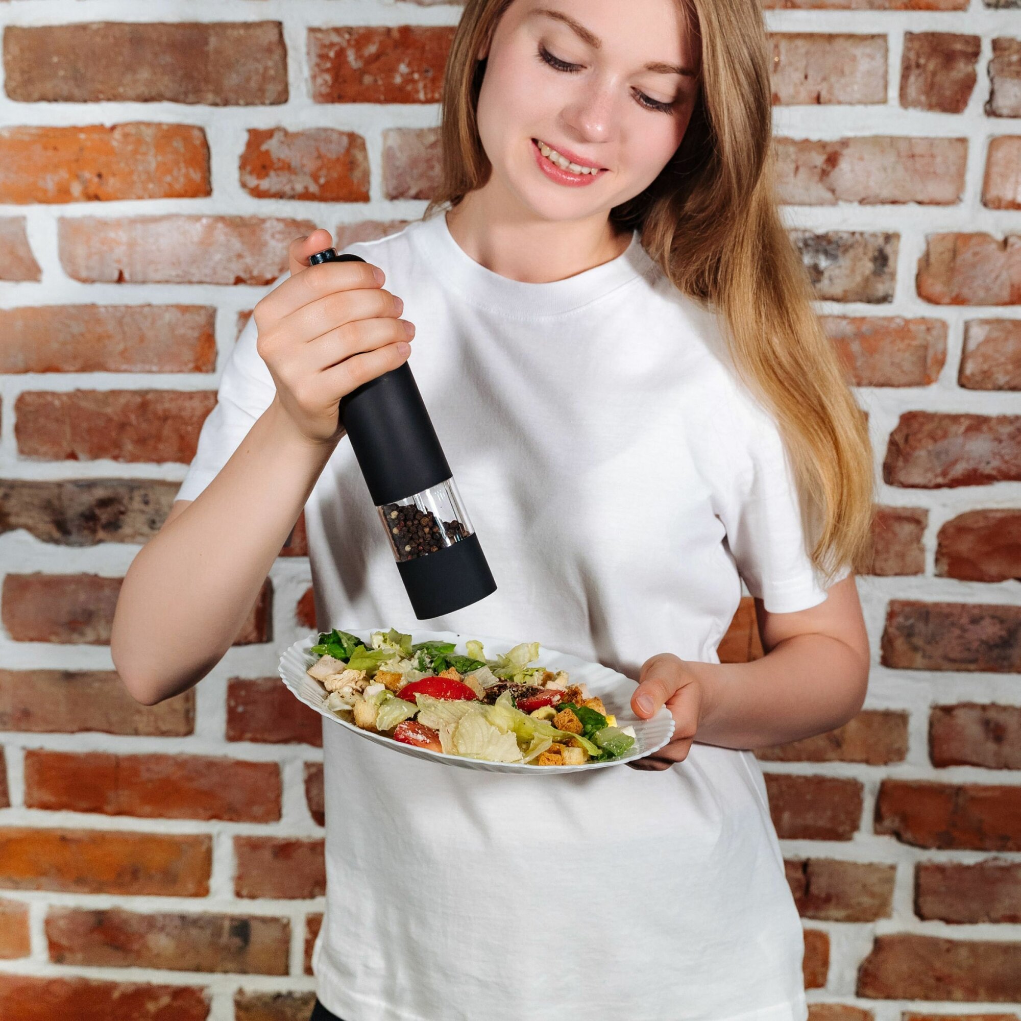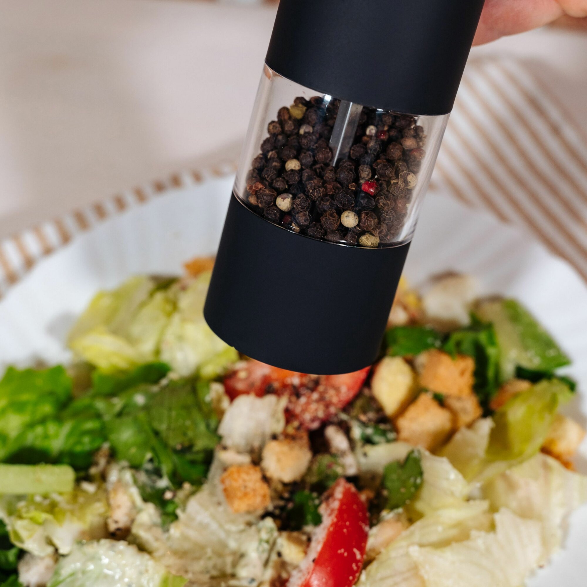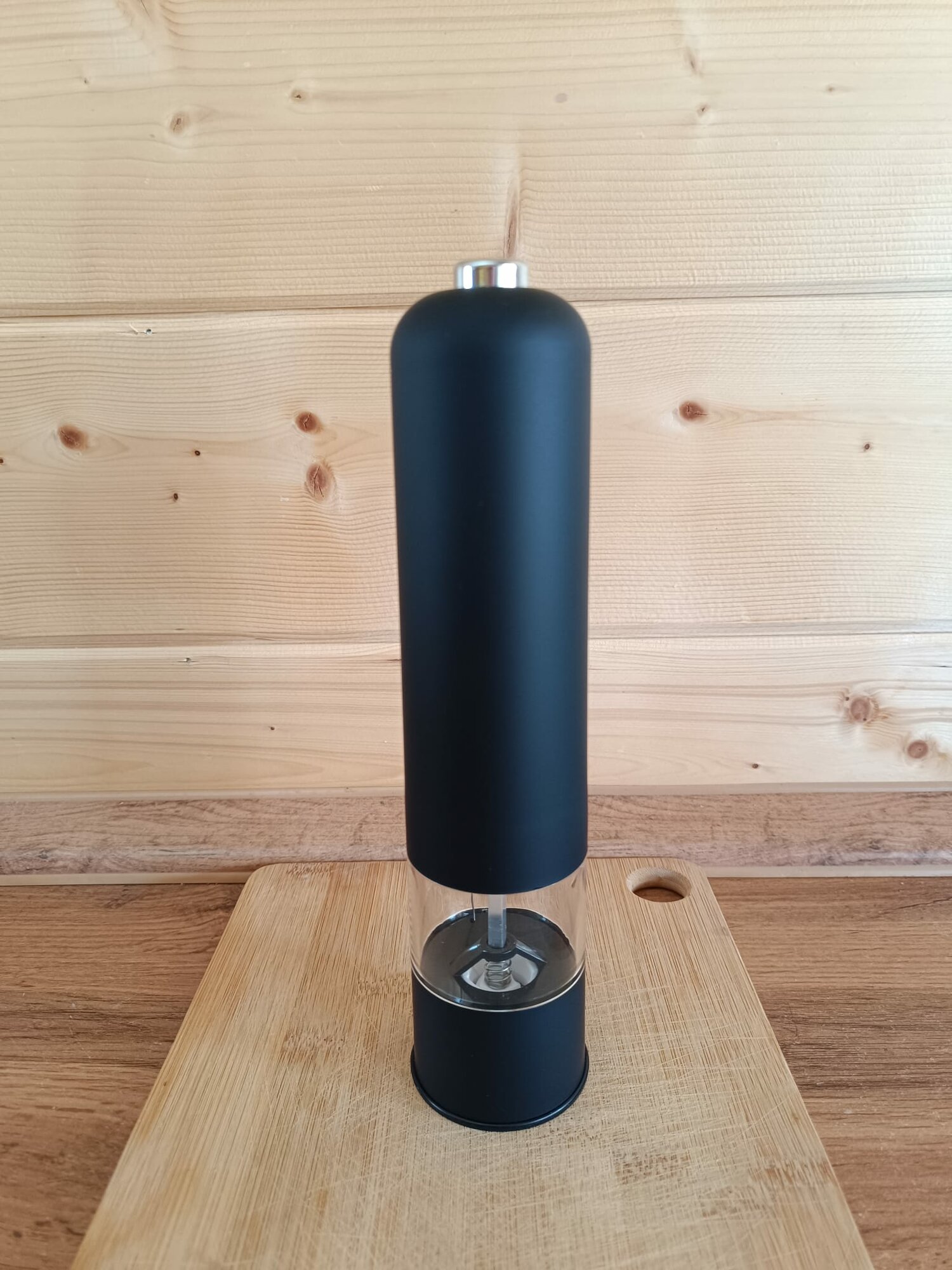 Мельница для специй электрическая, высота 23 см, солонка и перечница чёрная. Электромельница для соли и перца интересное: