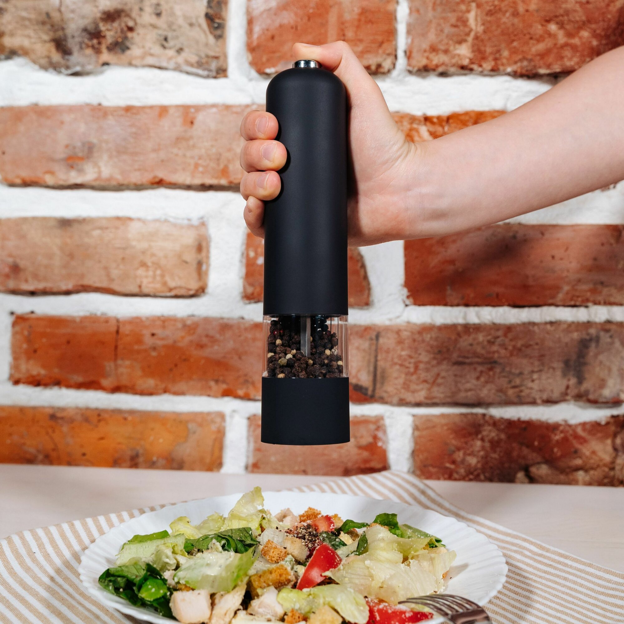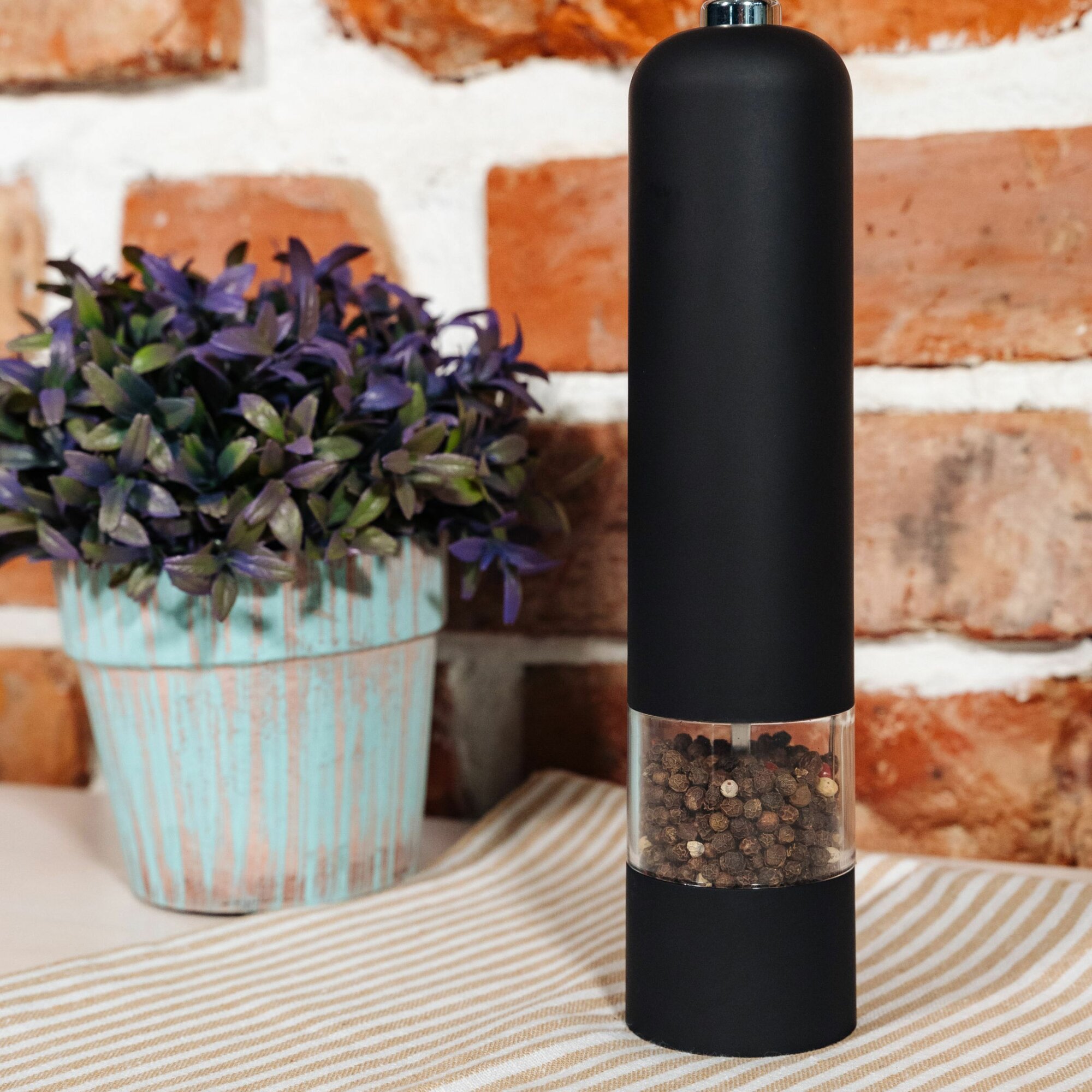 Купить Мельница для специй электрическая, высота 23 см, солонка и перечница чёрная. Электромельница для соли и перца