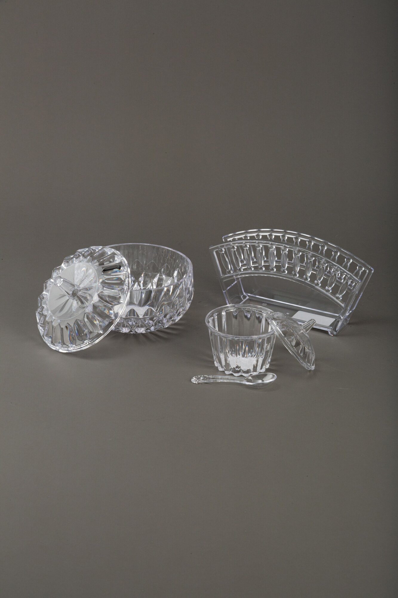Купить Комплект 1/3 Сахарница, салфетница, емкость для специй прозрачные
