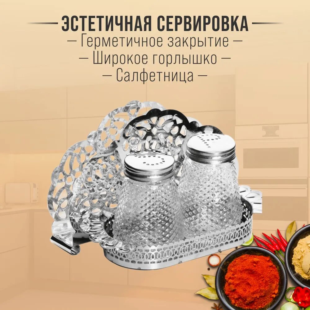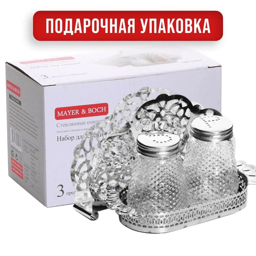 Набор для специй 3 предмета 2 х 40 мл. на подставке, стекло, нержавеющая сталь интересное: