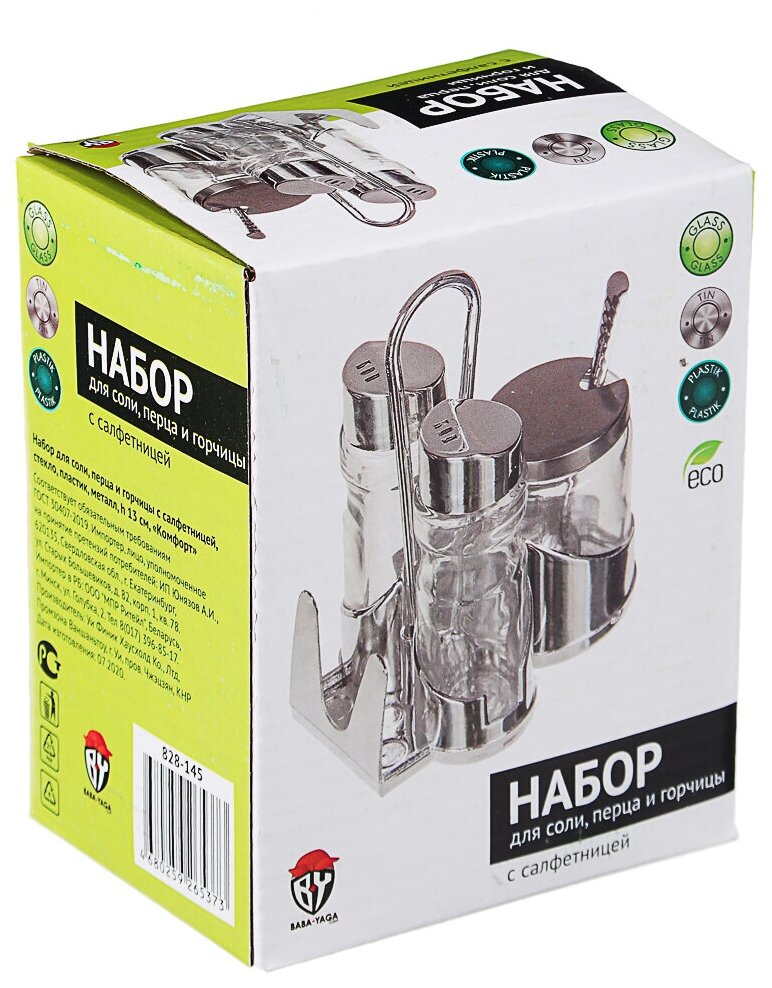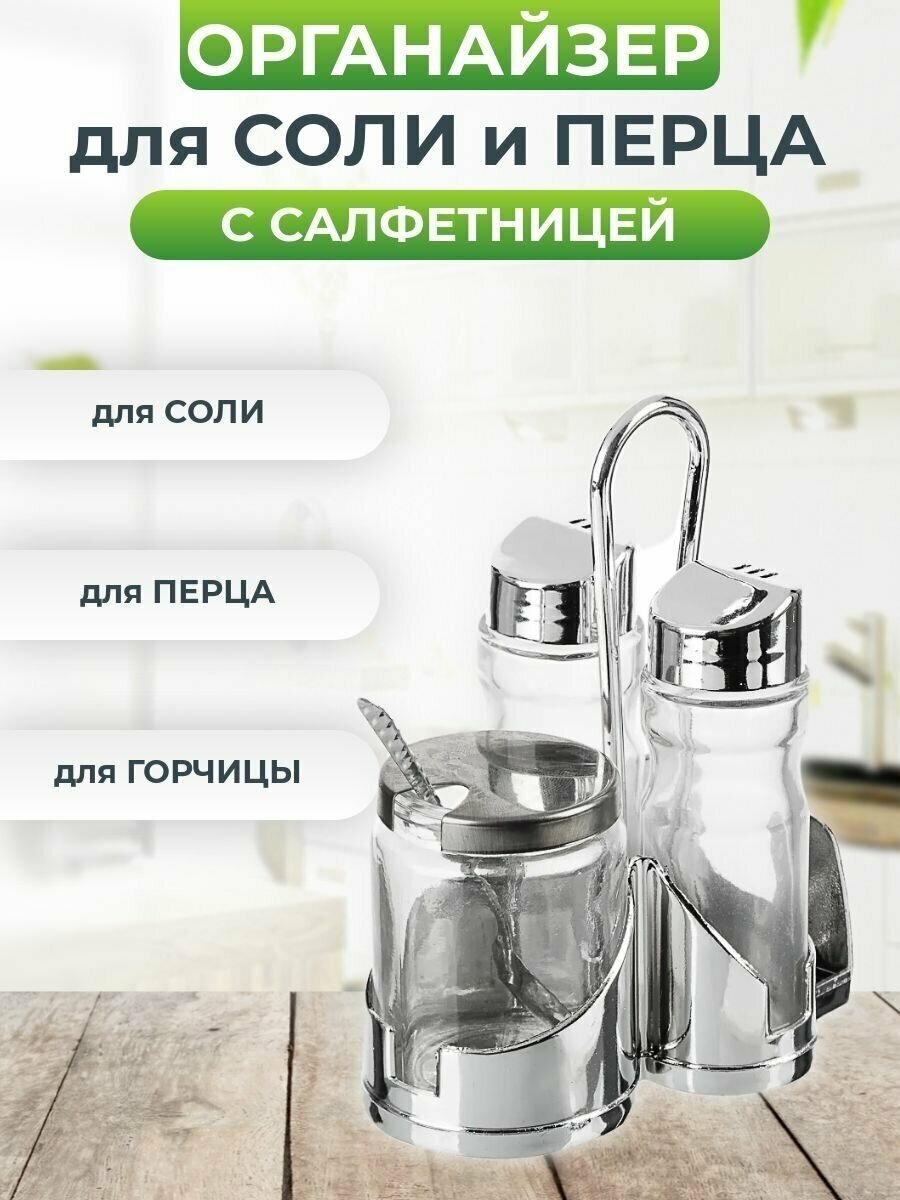3 Набора (комплект) для соли, перца И горчицы С салфетницей, стекло, пластик, металл, H13СМ, "комфорт" интересное:
