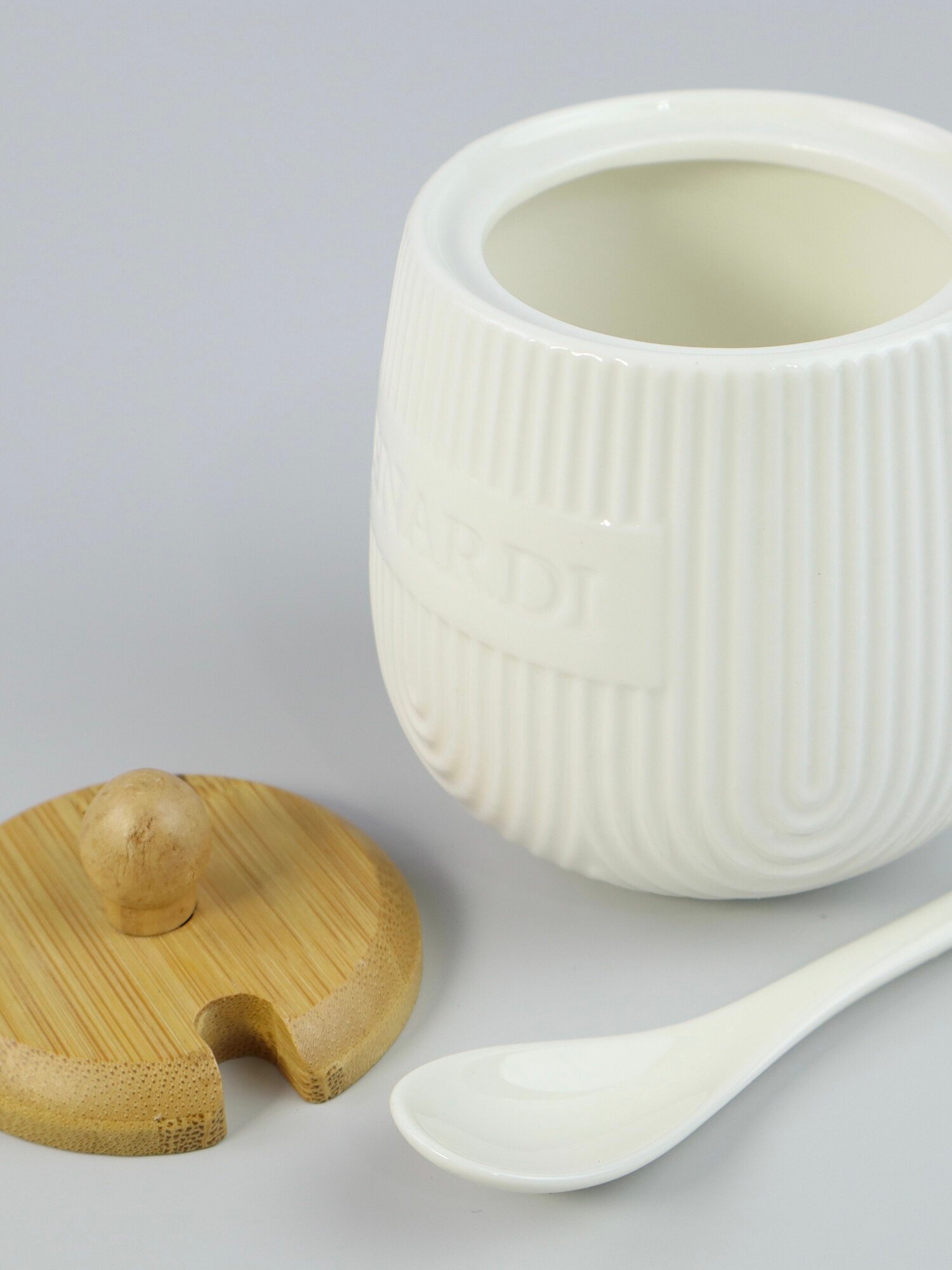 Набор из 4 банок для специй с ложками на подставке "Bamboo", 150 мл. Фарфор. Подарочная упаковка. Lenardi.