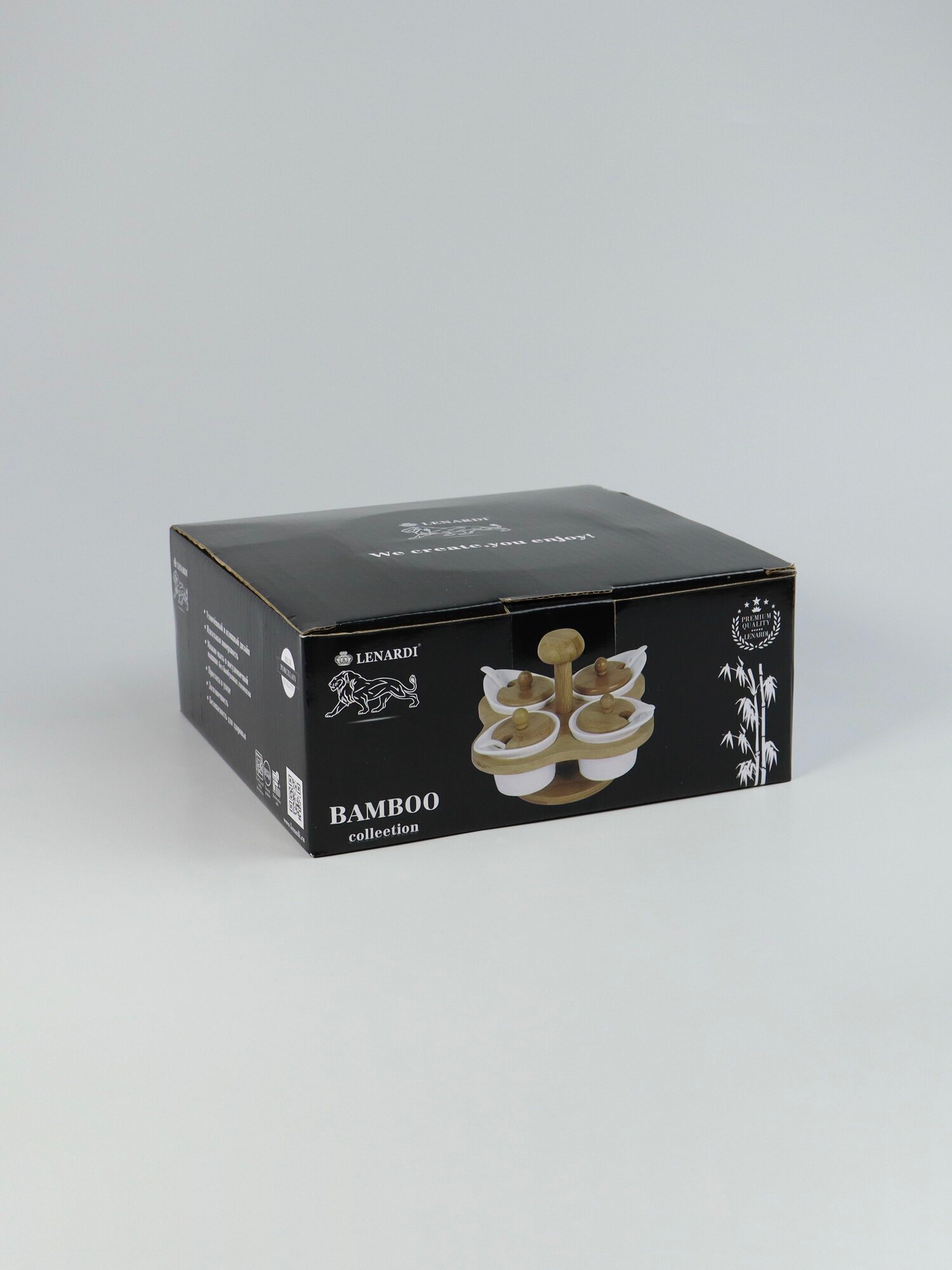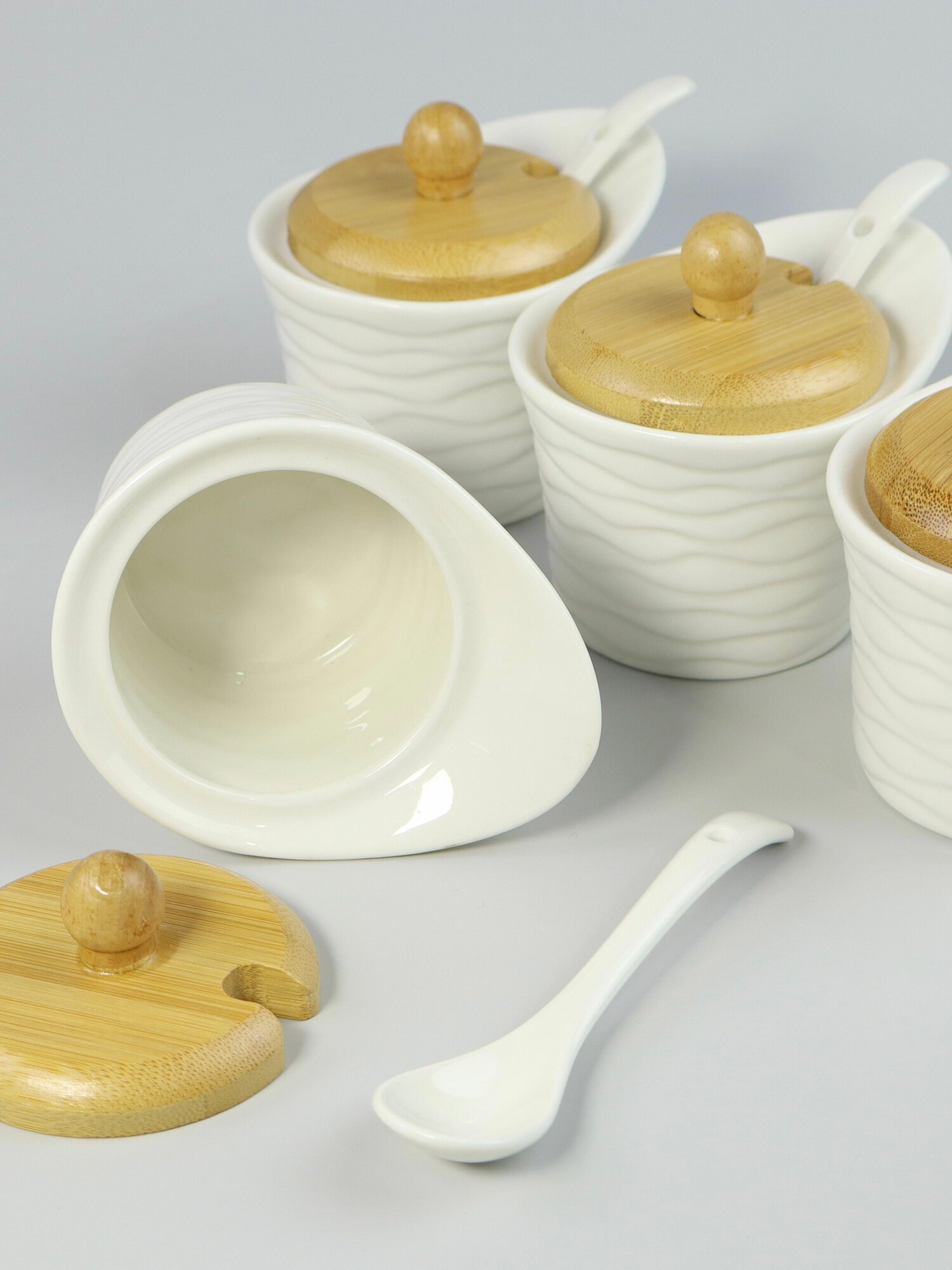 Набор из 4 банок для специй с ложками на подставке "Bamboo", 150 мл. Фарфор. Подарочная упаковка. Lenardi. интересное: