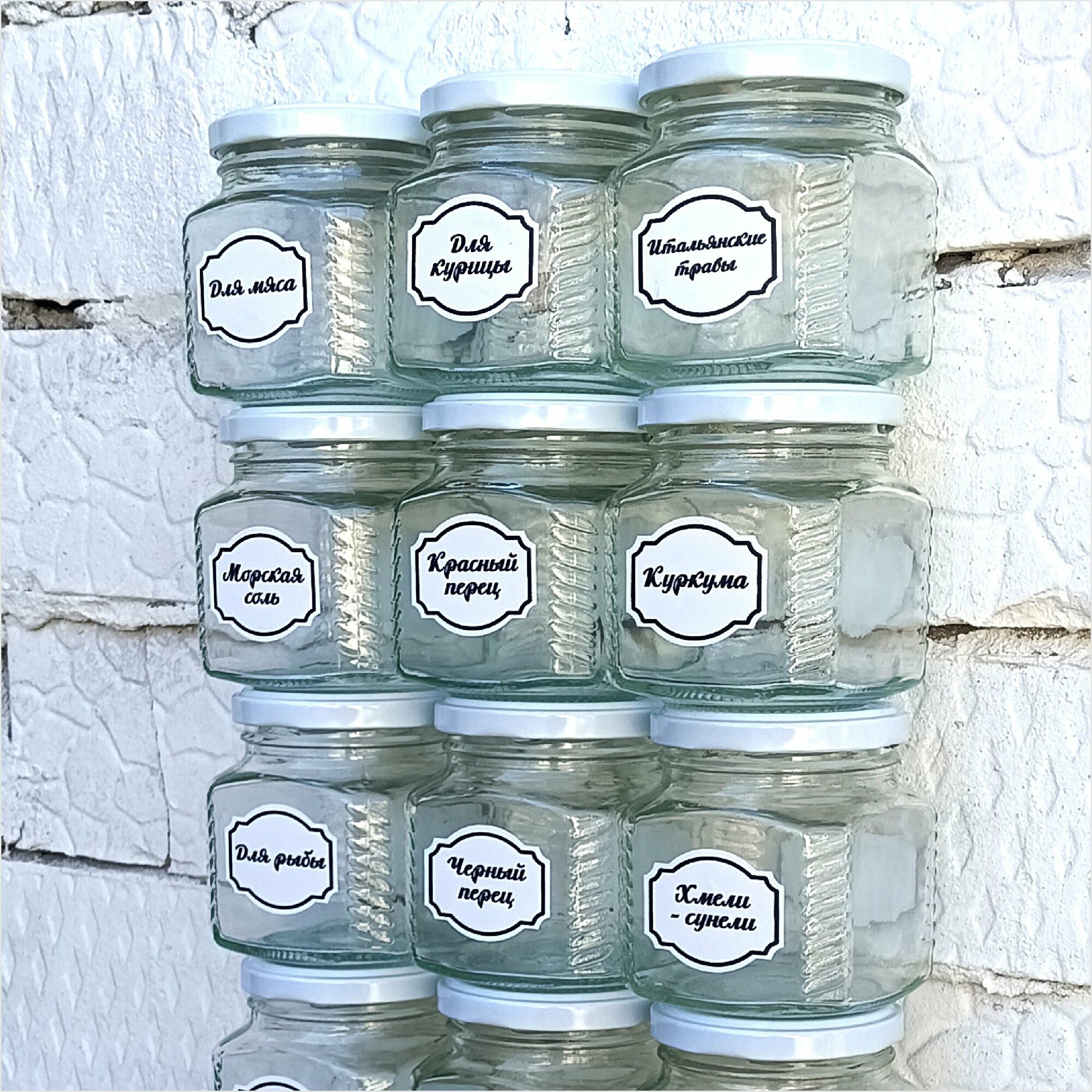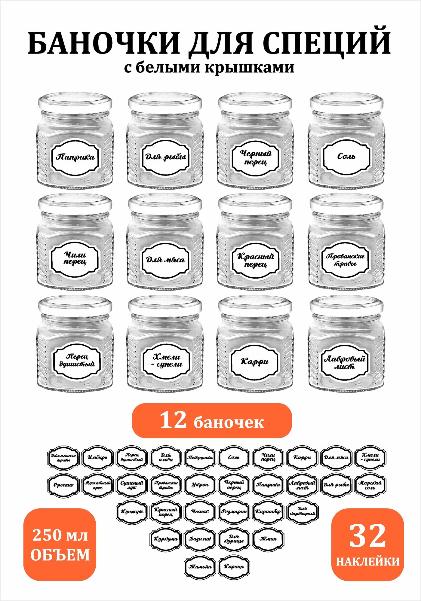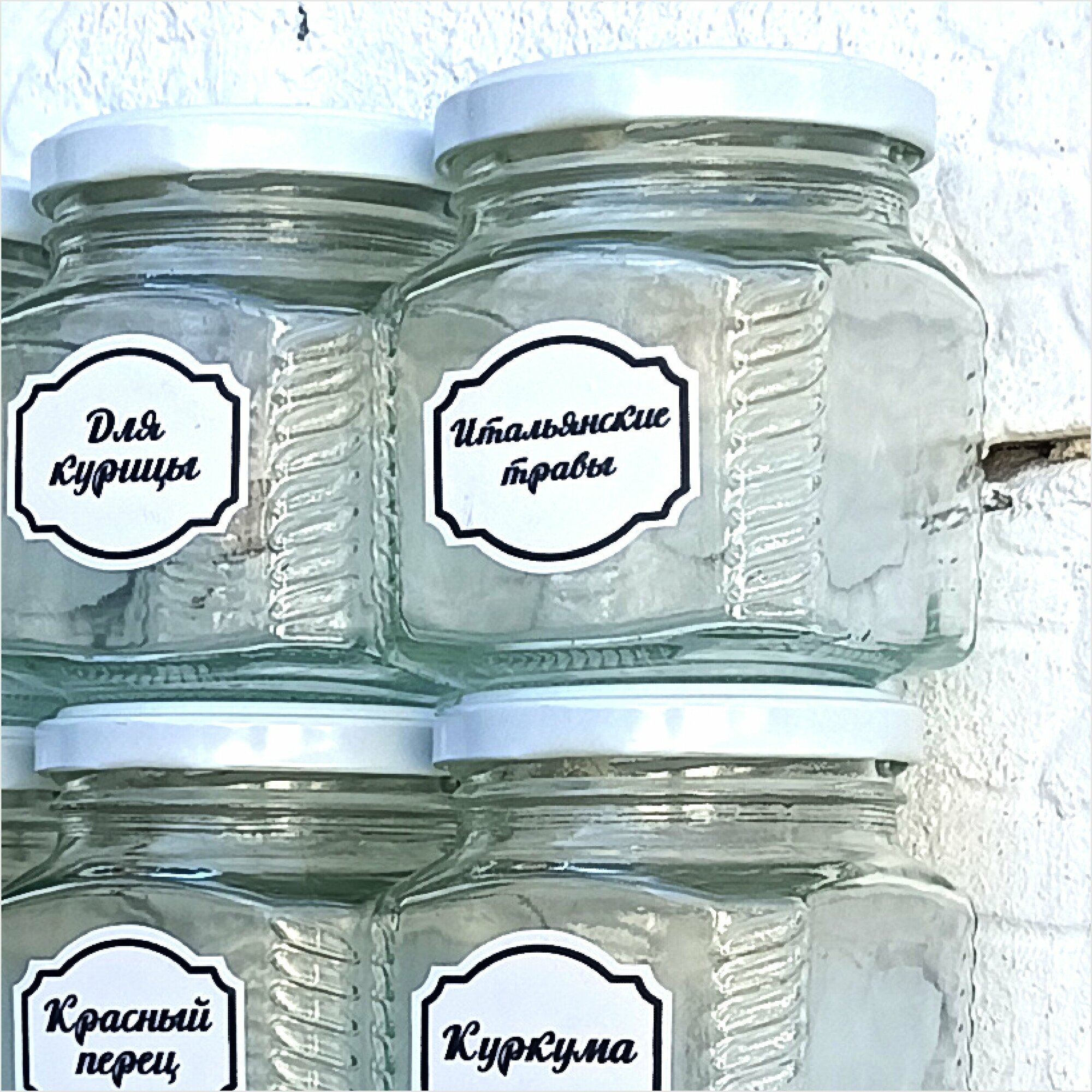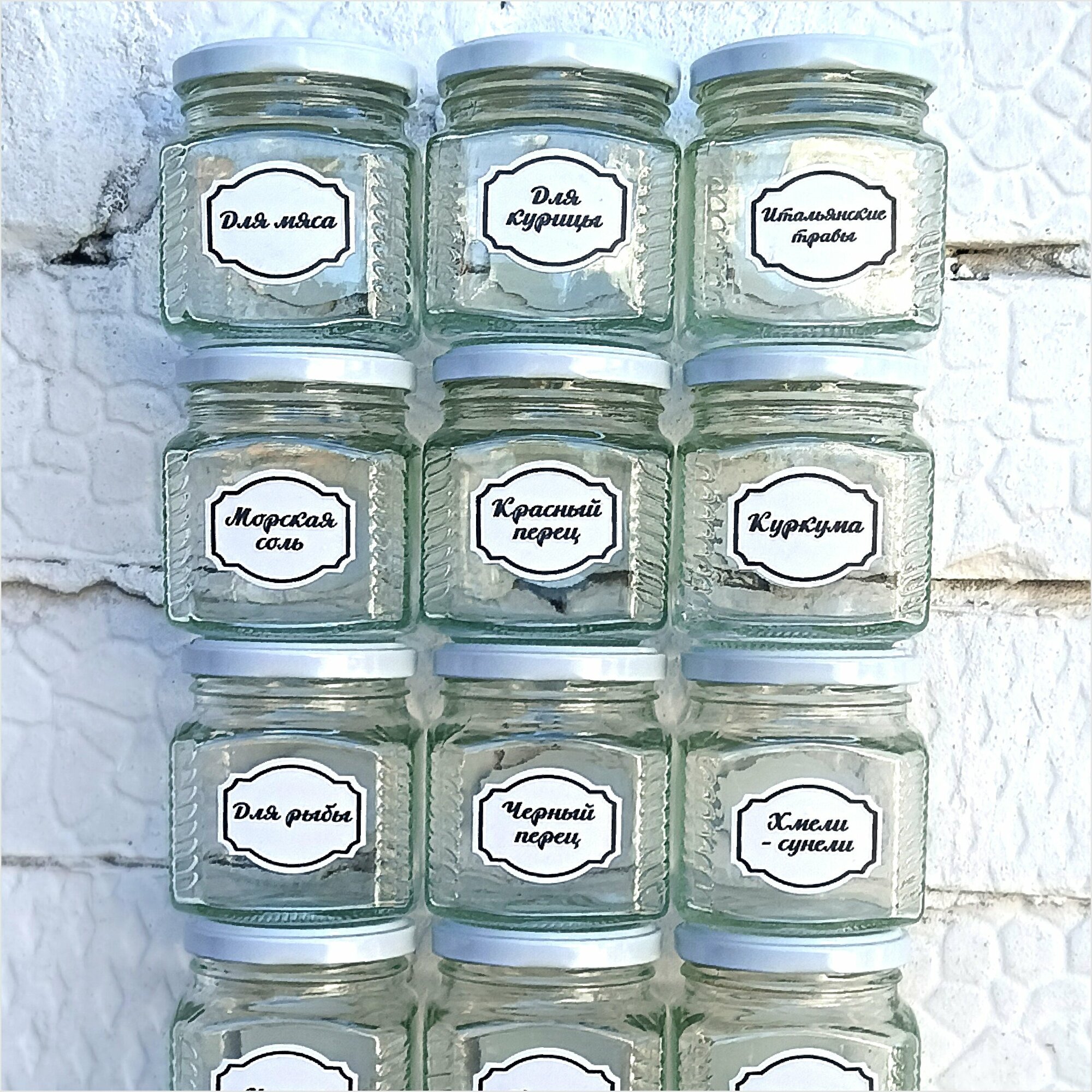 Набор стеклянных баночек для хранения специй с белой крышкой белой этикеткой интересное: