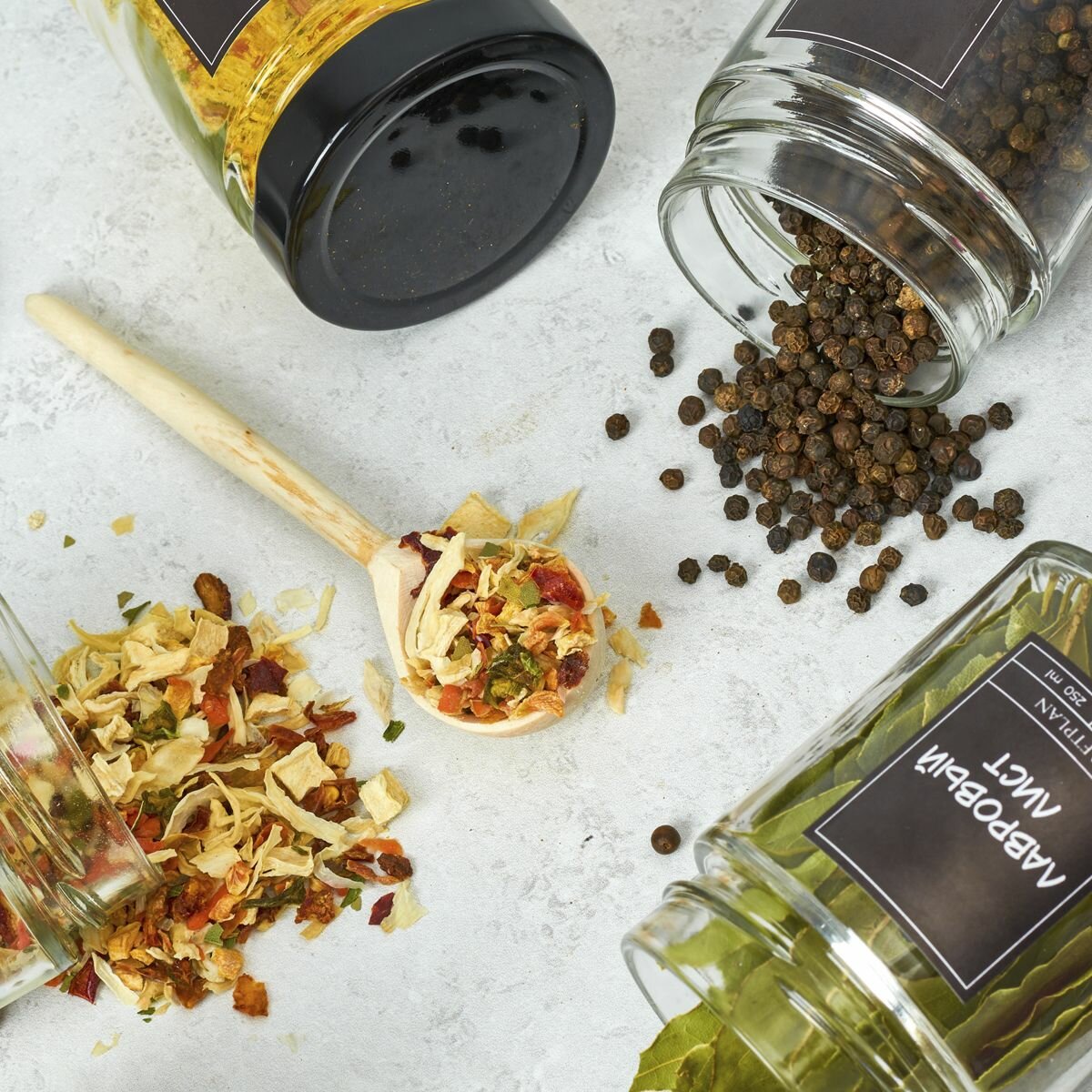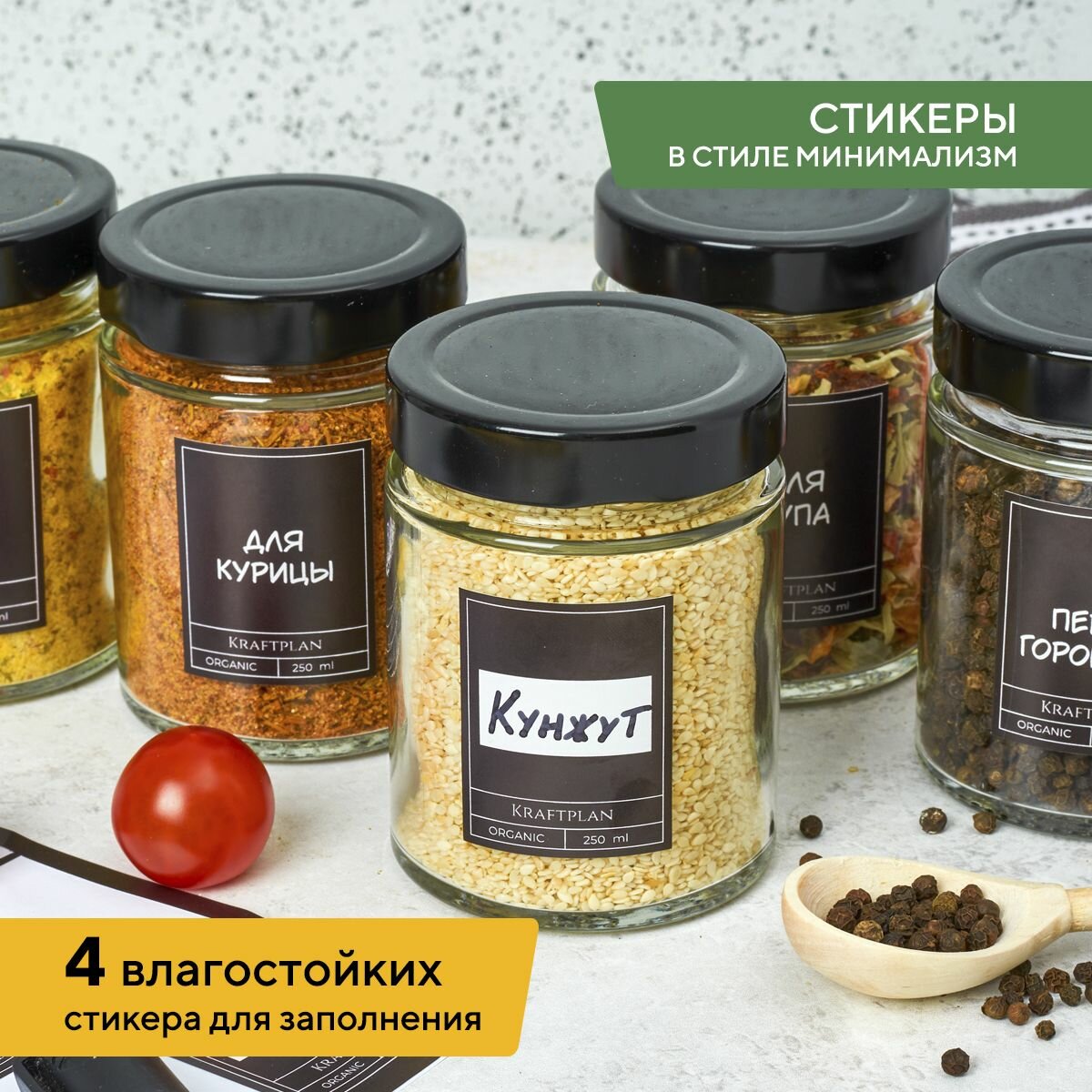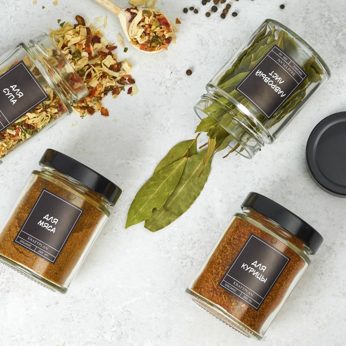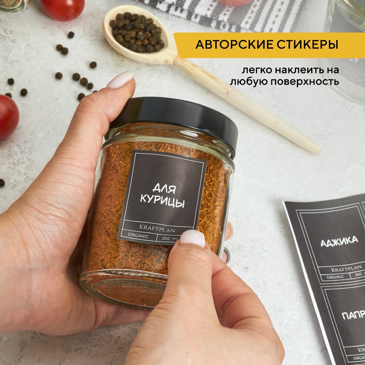 Баночки для специй стекло KRAFTPLAN/ Набор емкостей под специи, Банки для приправ с наклейками и деревянной ложкой, 6 шт интересное: