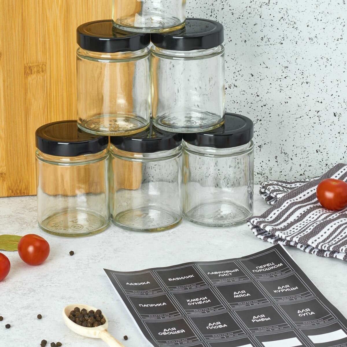 Купить Баночки для специй стекло KRAFTPLAN/ Набор емкостей под специи, Банки для приправ с наклейками и деревянной ложкой, 6 шт