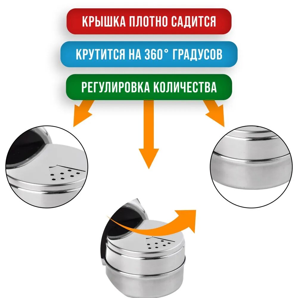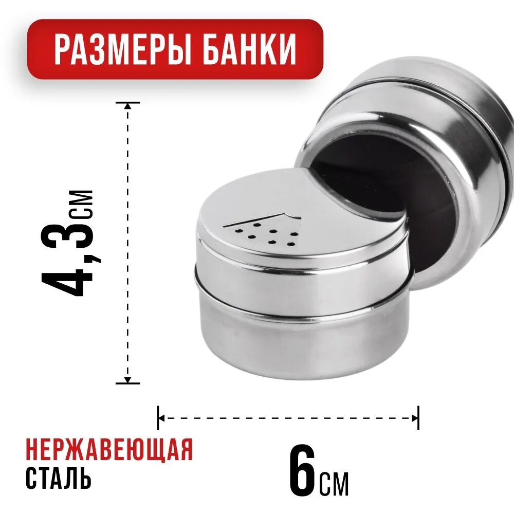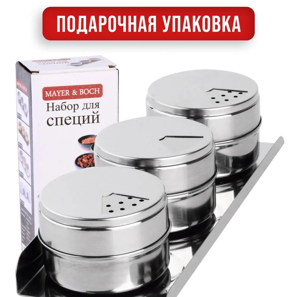 Набор баночек на магните для приправ, специй и сыпучих продуктов 3 х 100 мл. на подставке нержавеющая сталь серебристый интересное: