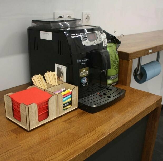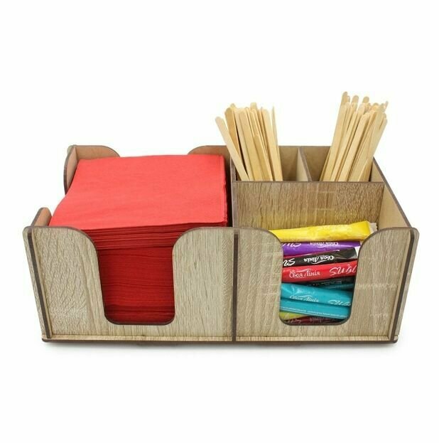 Деревянная салфетница для ресторана с отсеками для соусов, специй и меню интересное: