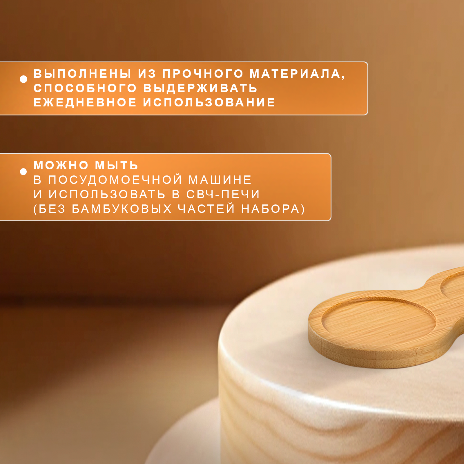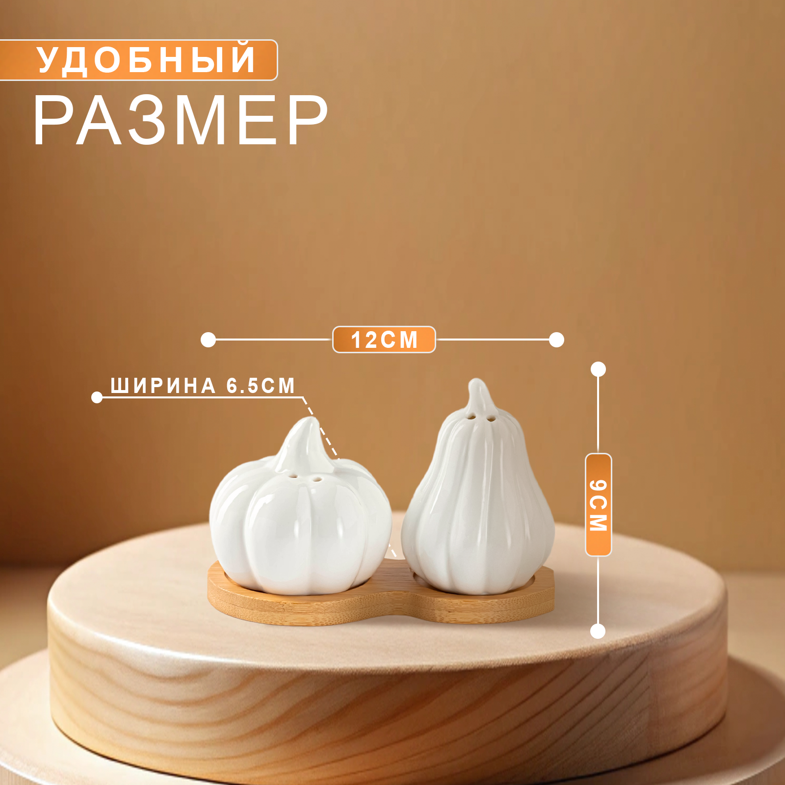 Солонка и перечница фарфоровая на бамбуковой подставке "Доляна" набор для специй, 40 мл
