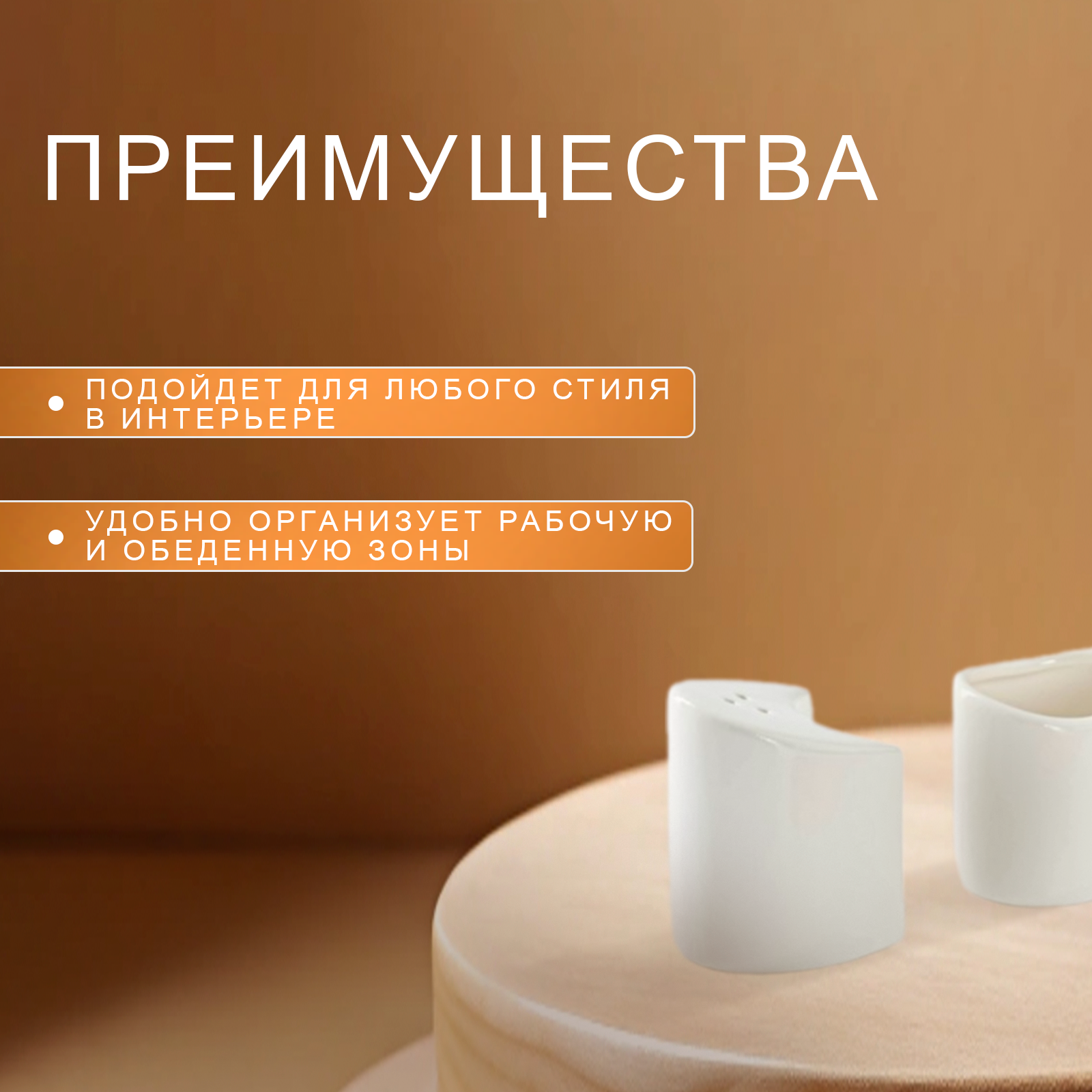 Набор керамический для специй на деревянной подставке 3 предмета: солонка 70 мл, перечница 70 мл, салфетница, белый