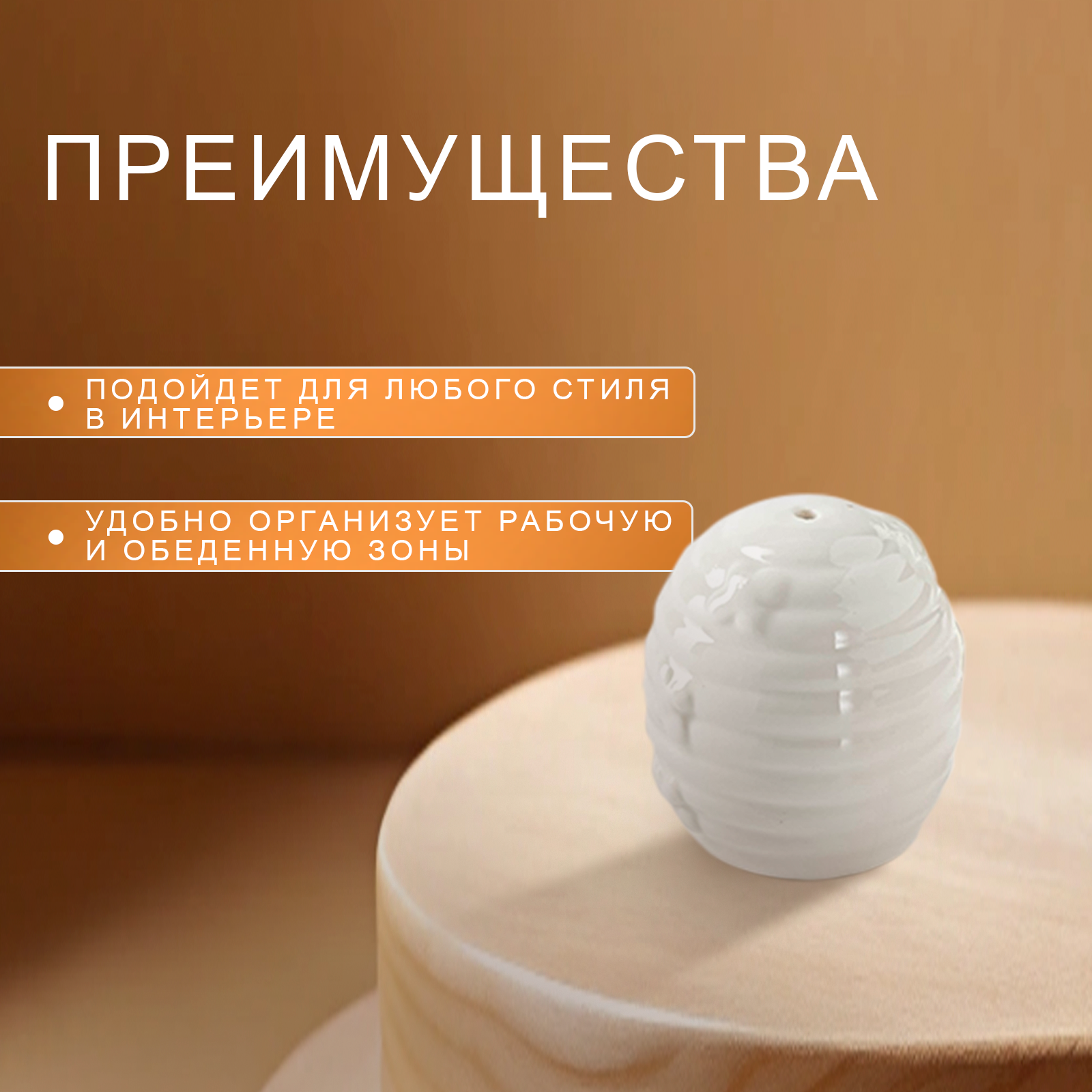 Набор керамический для специй на деревянной подставке 3 предмета: солонка 70 мл, перечница 70 мл, салфетница, белый