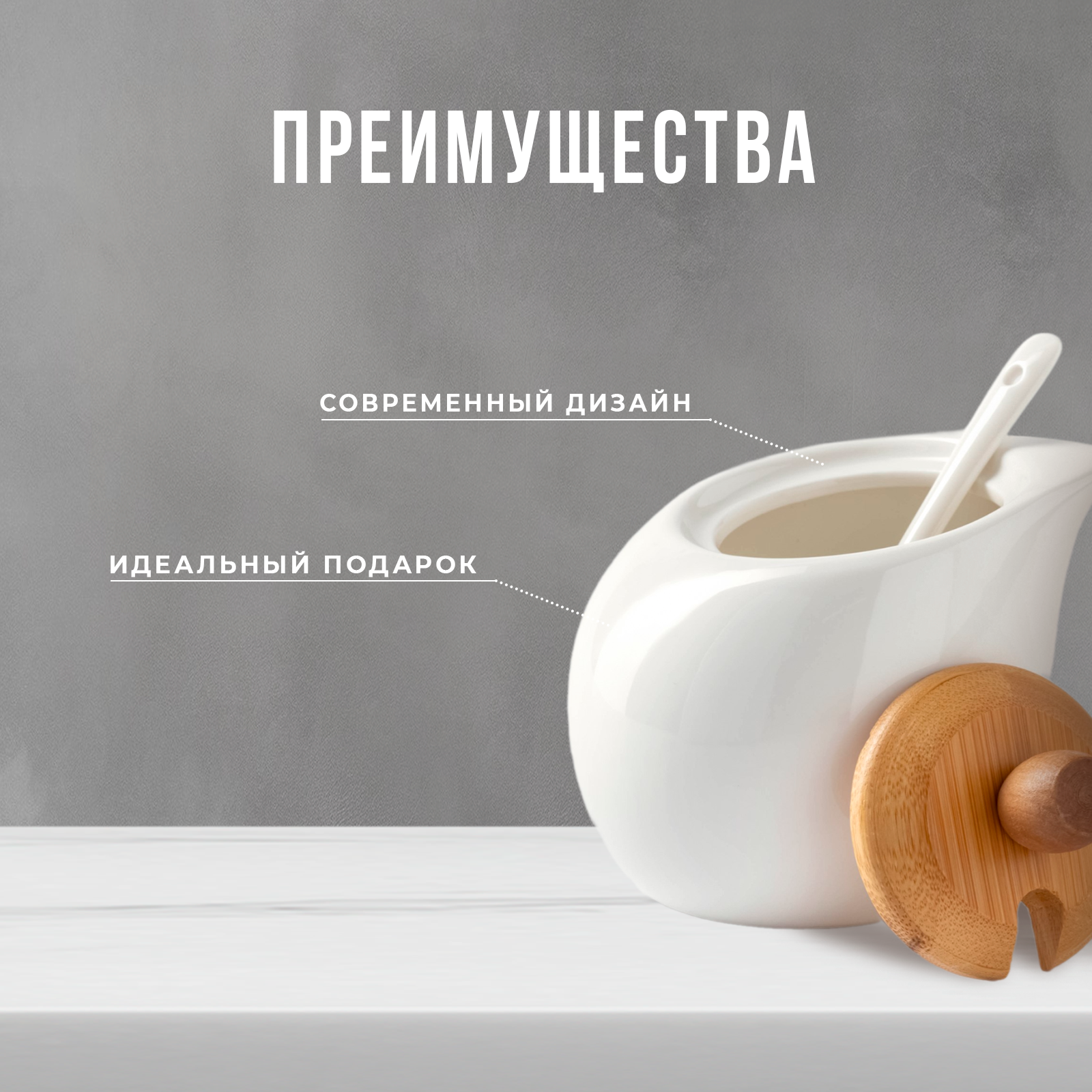 Набор керамический для специй на деревянной подставке Доляна "Эстет. Герда", 3 предмета: солонка, перечница, сахарница с ложкой