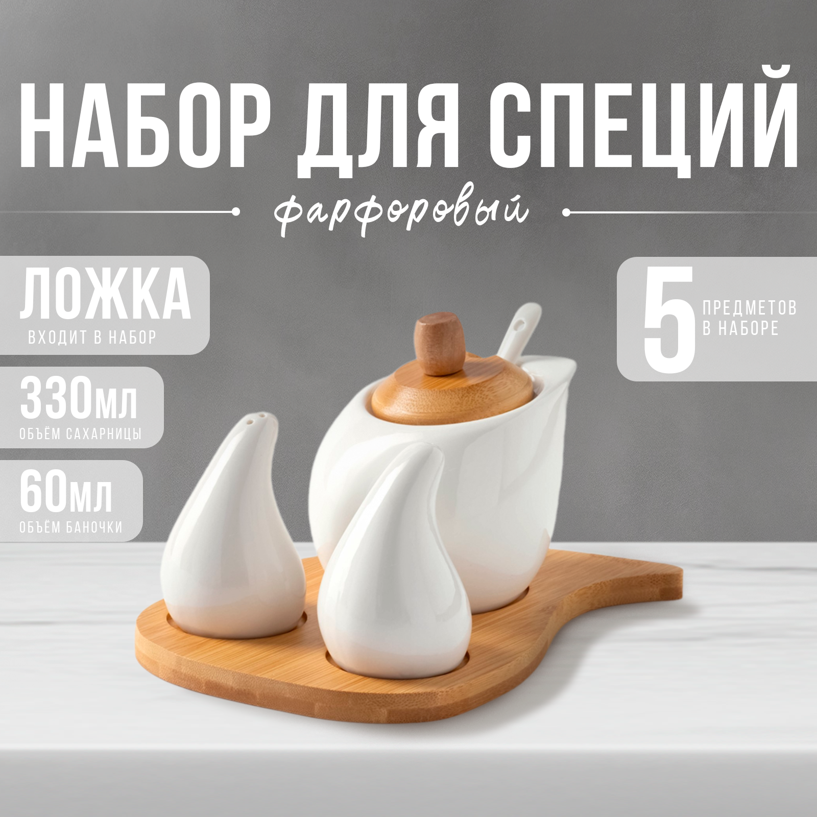 Набор для специй BellaTenero, 5 предметов, на подставке, фарфор, белый