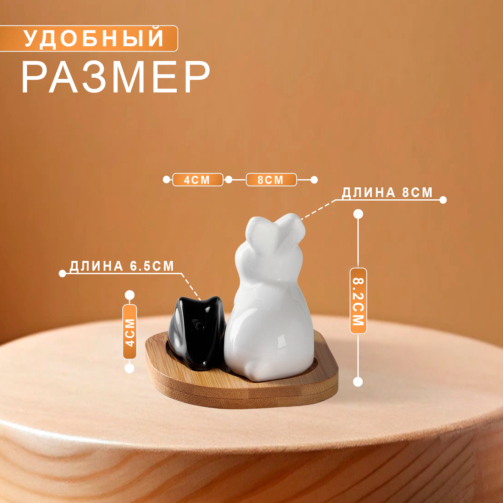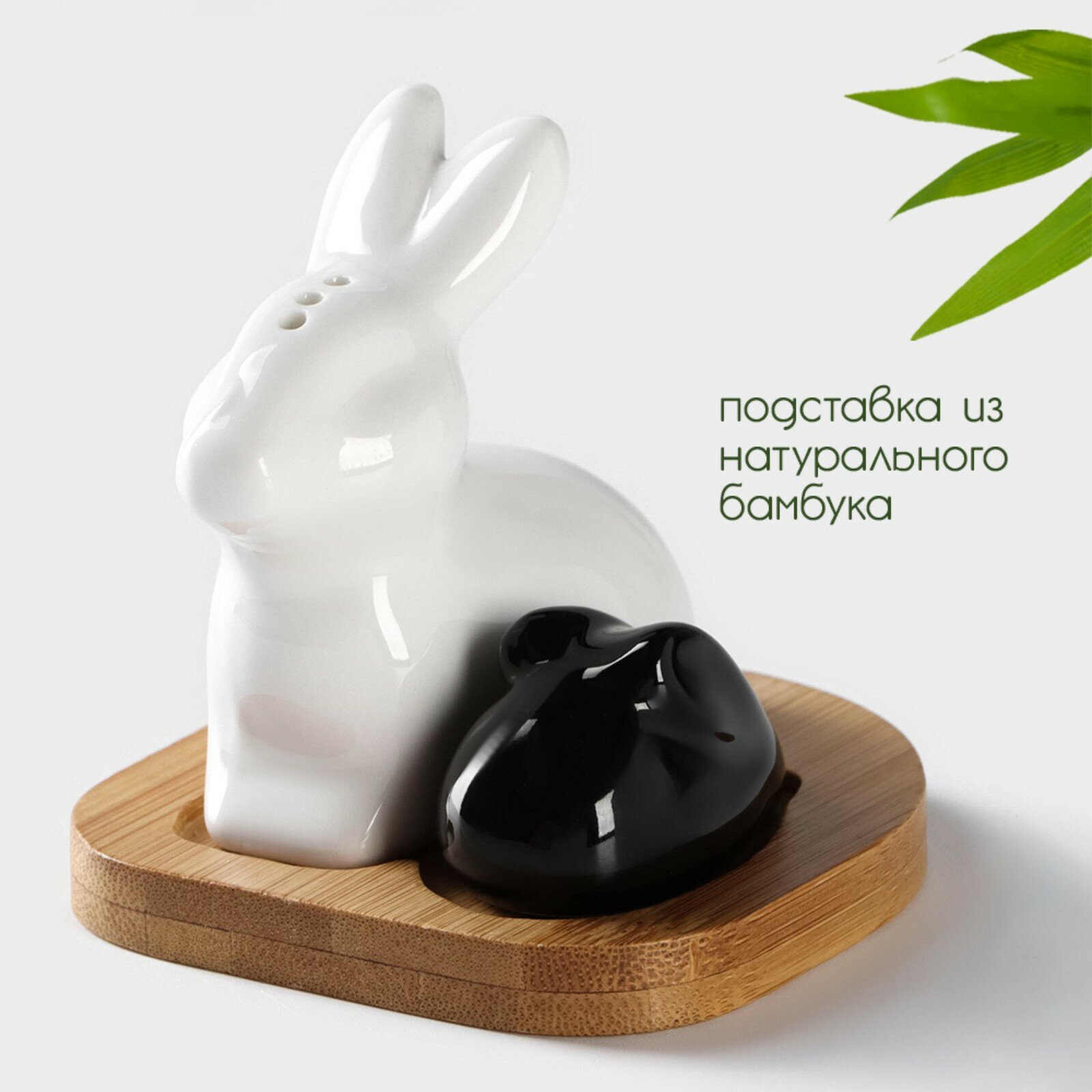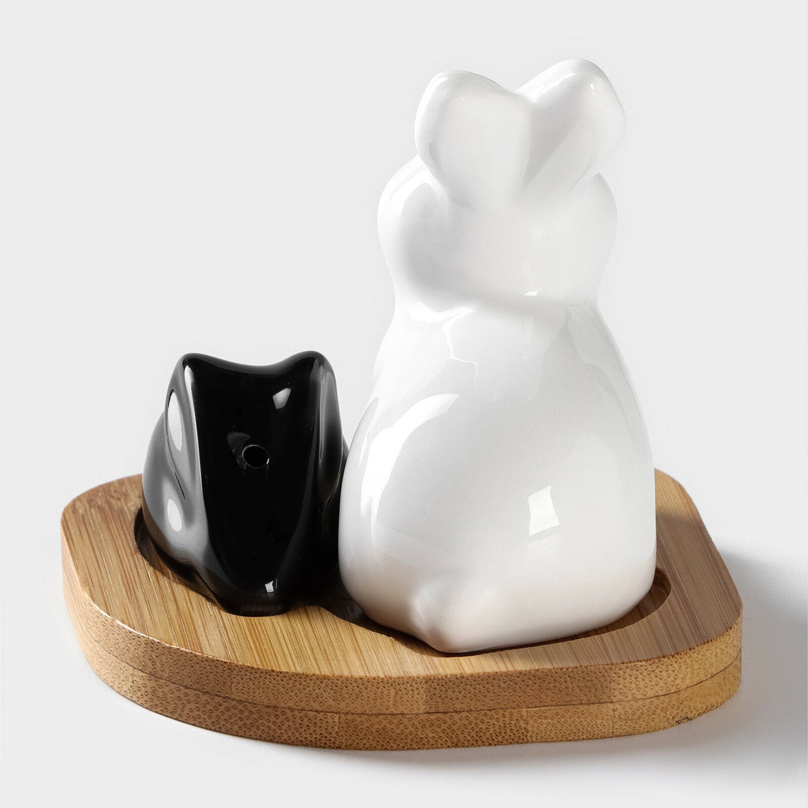 Солонка и перечница фарфоровая на бамбуковой подставке "Доляна" набор для специй, 40 мл