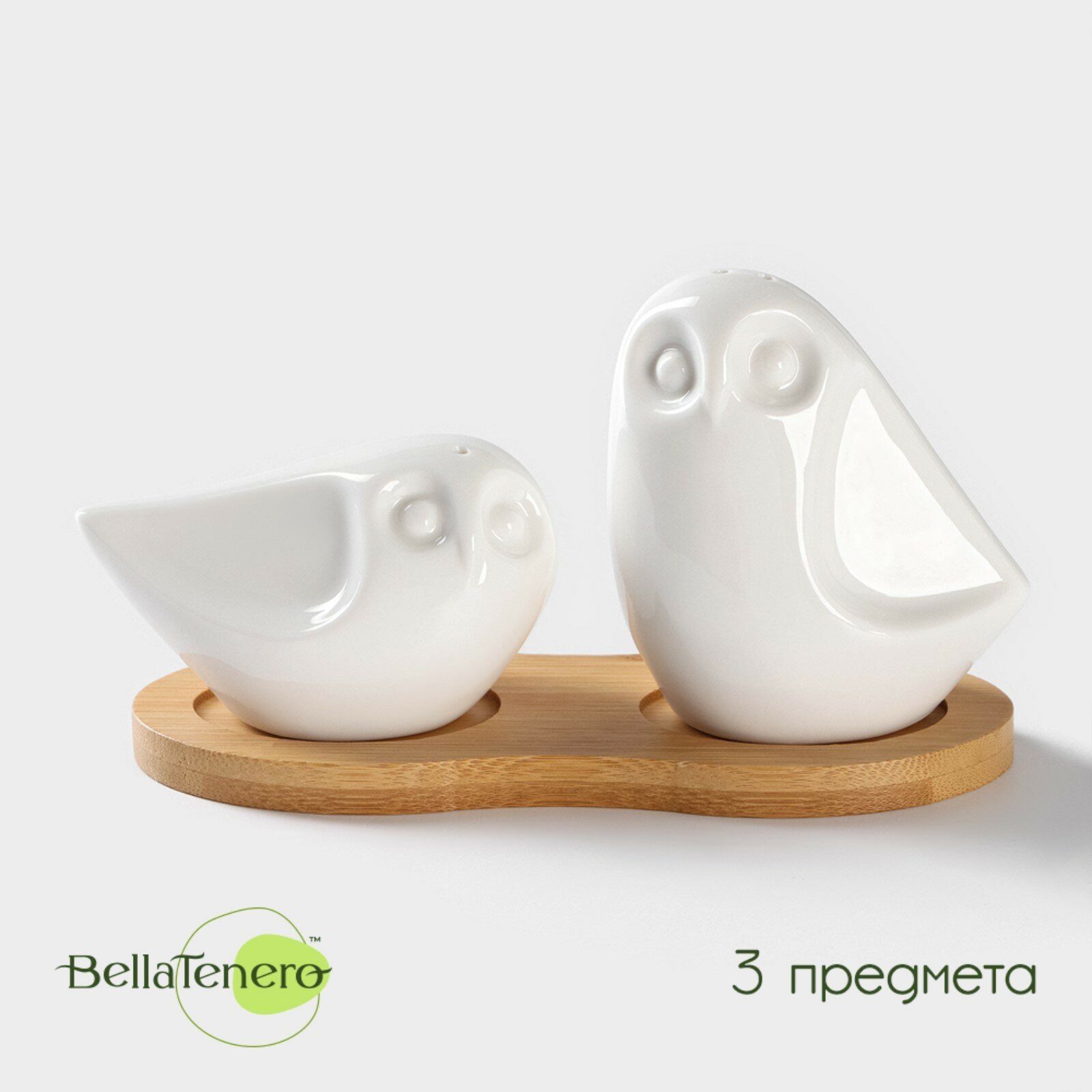 Набор для специй на деревянной подставке BellaTenero "Ласточкины гнёзда", 2 предмета, цвет белый, фарфор
