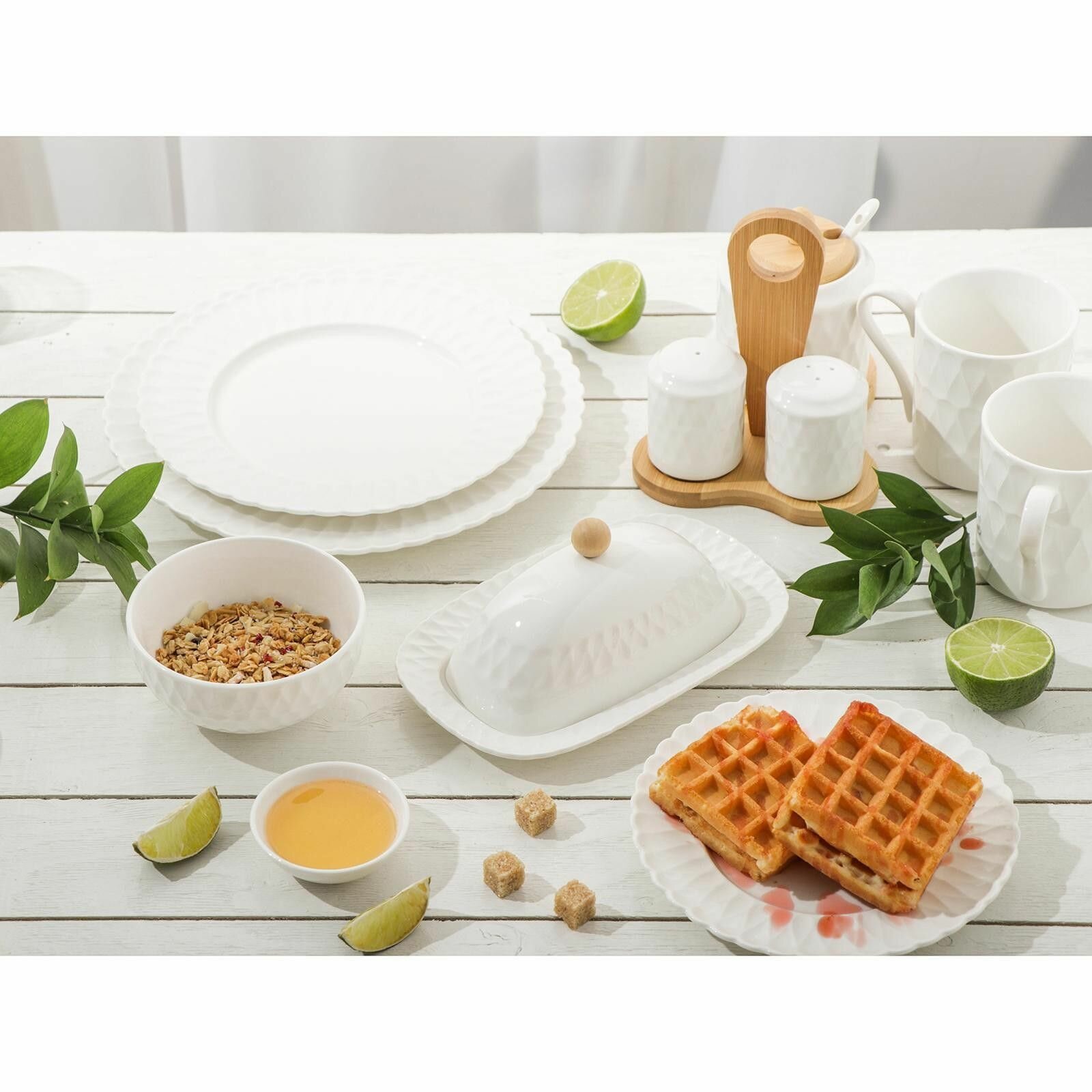 Солонка и перечница фарфоровая с дозаторами для масла BellaTenero, набор для специй на бамбуковой подставке