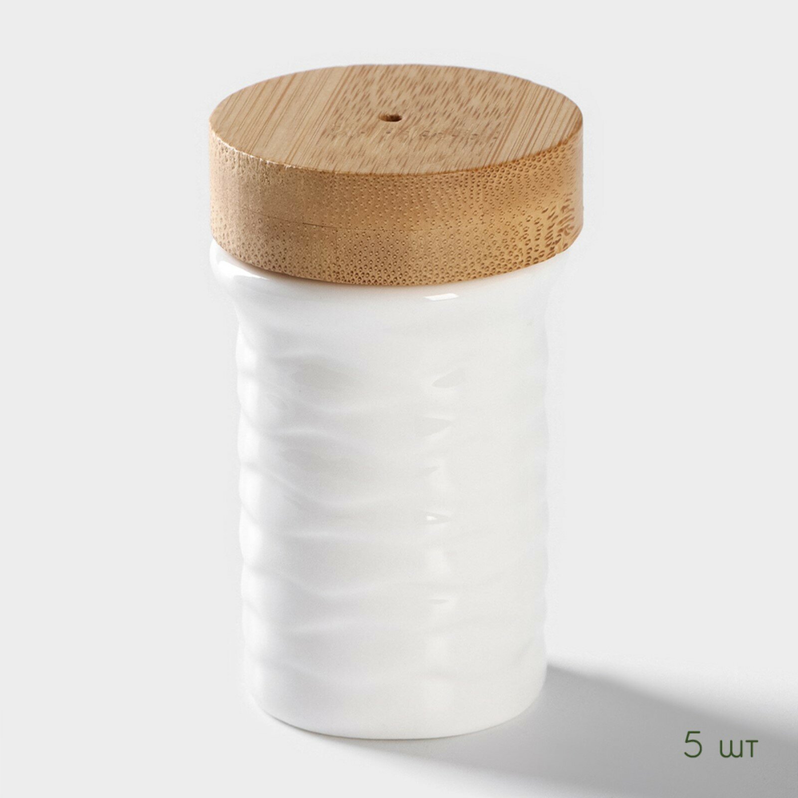 Купить Набор для специй и соусов, 8 предметов: 2 ёмкости 250 мл, 5 баночек для специй, на бамбуковой подставке, фарфор, белый