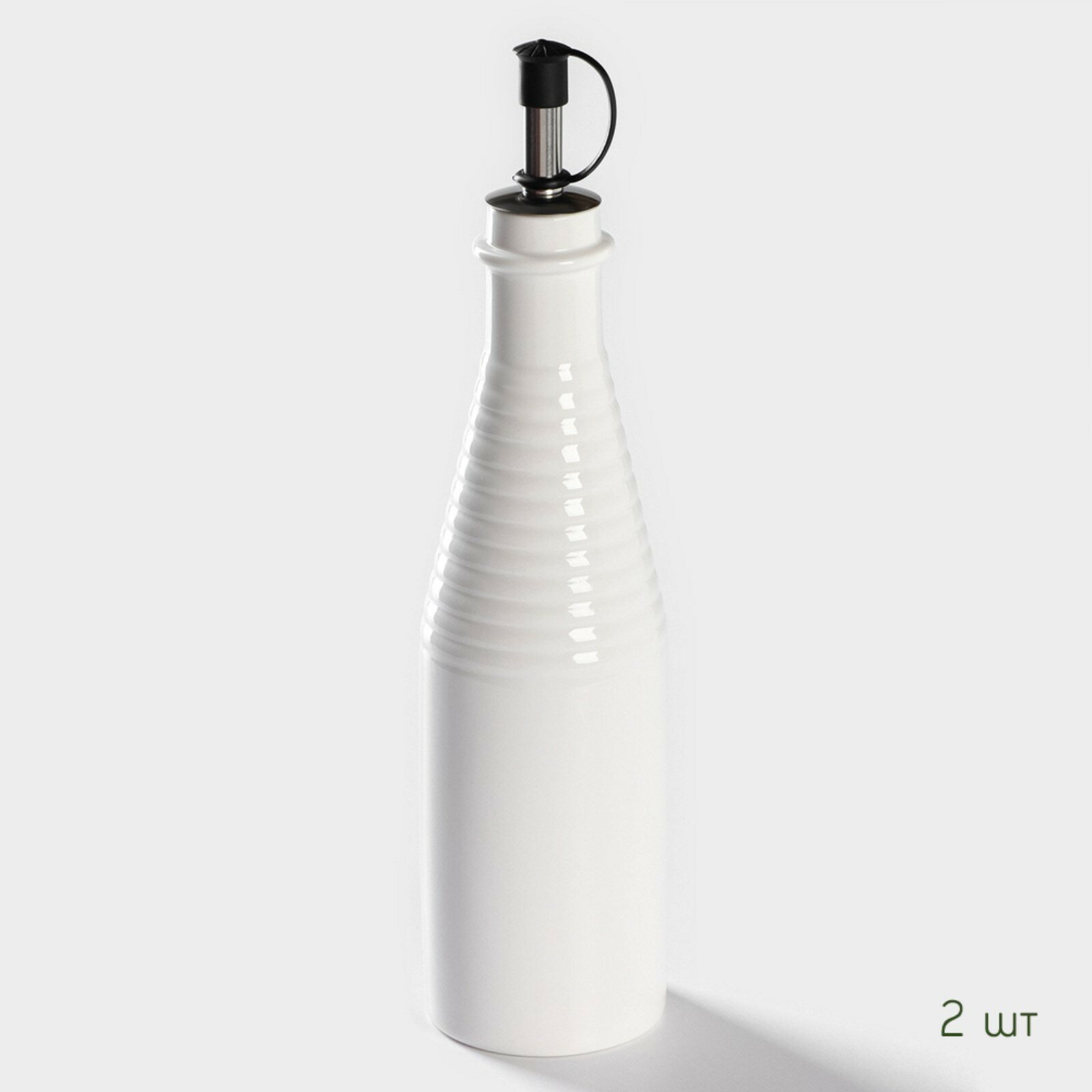 Солонка и перечница фарфоровая с дозаторами для масла BellaTenero, набор для специй на бамбуковой подставке