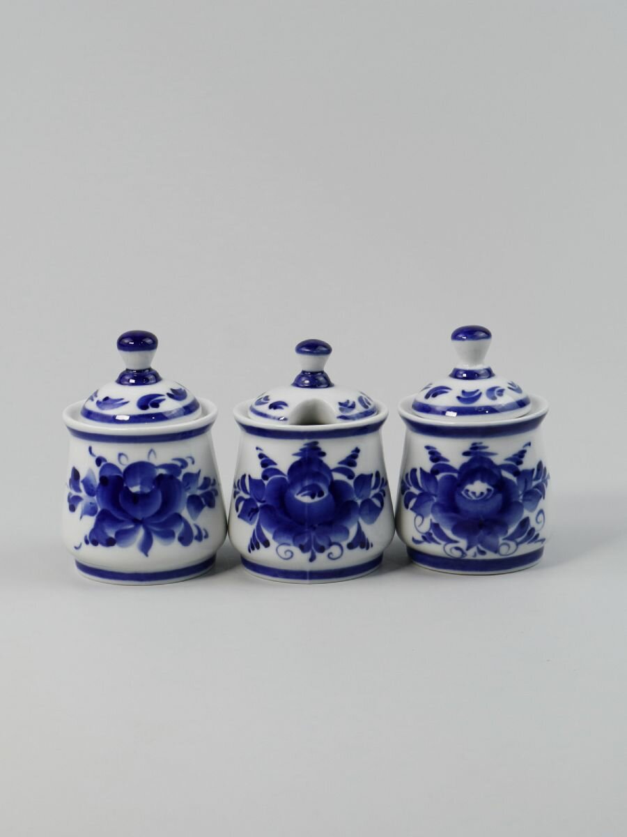 Купить Набор для специй, 80 мл, 4 предмета. Объединение Гжель. Ручная работа. Фарфор.