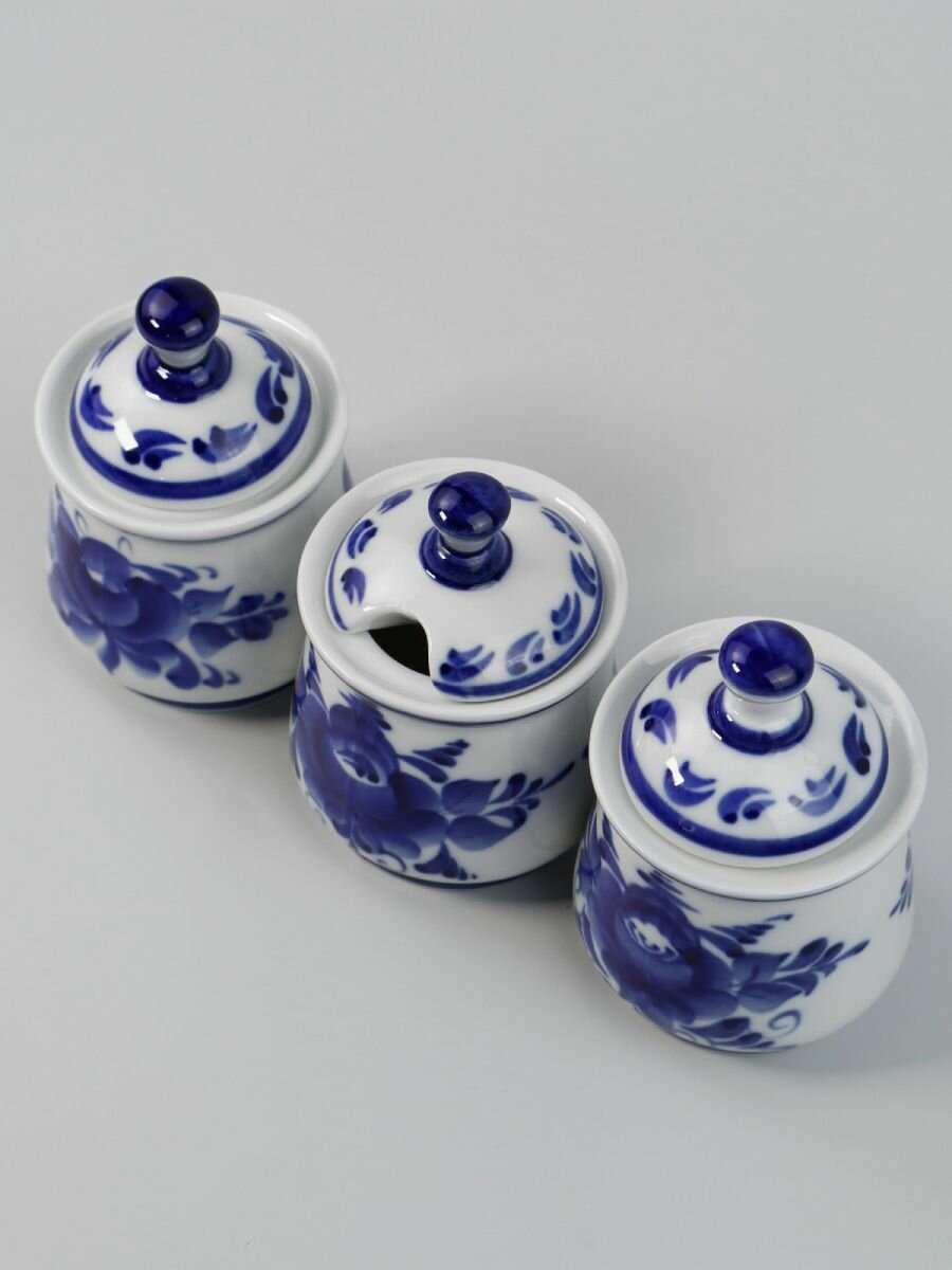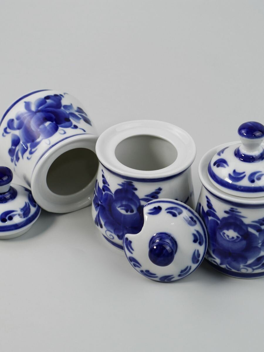Набор для специй, 80 мл, 4 предмета. Объединение Гжель. Ручная работа. Фарфор. интересное:
