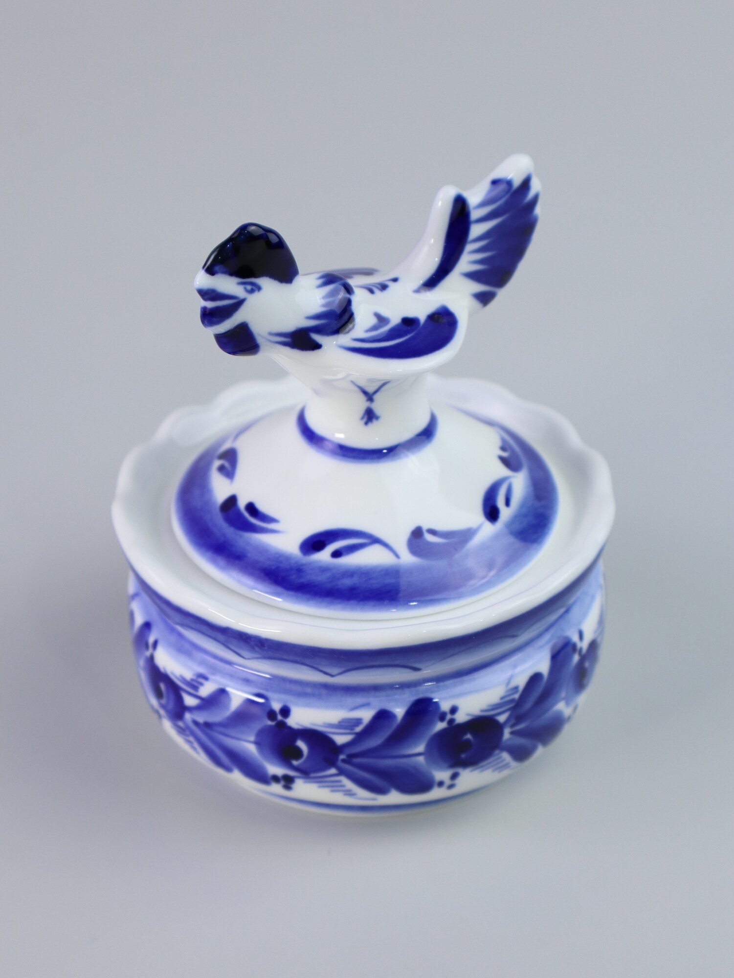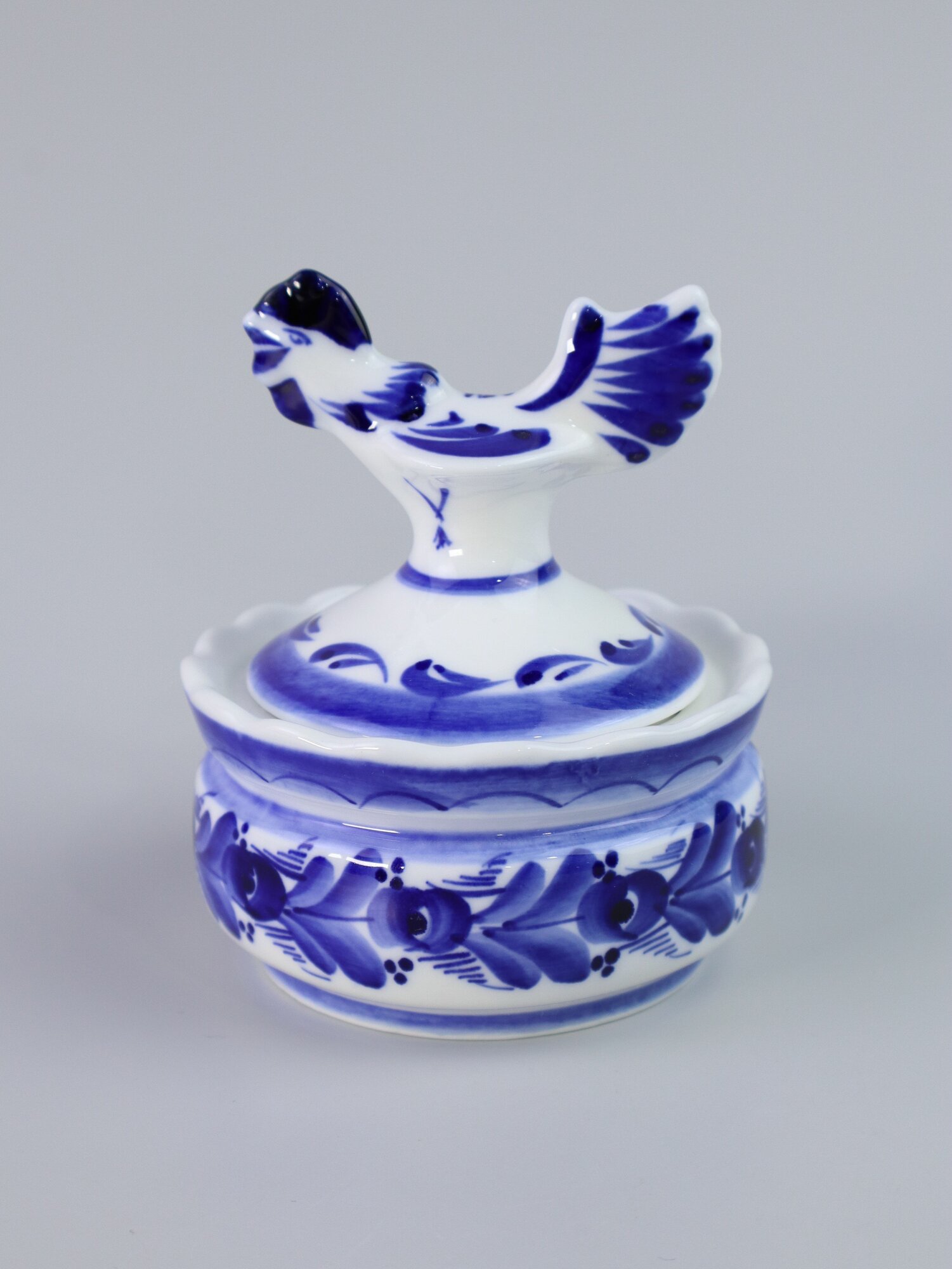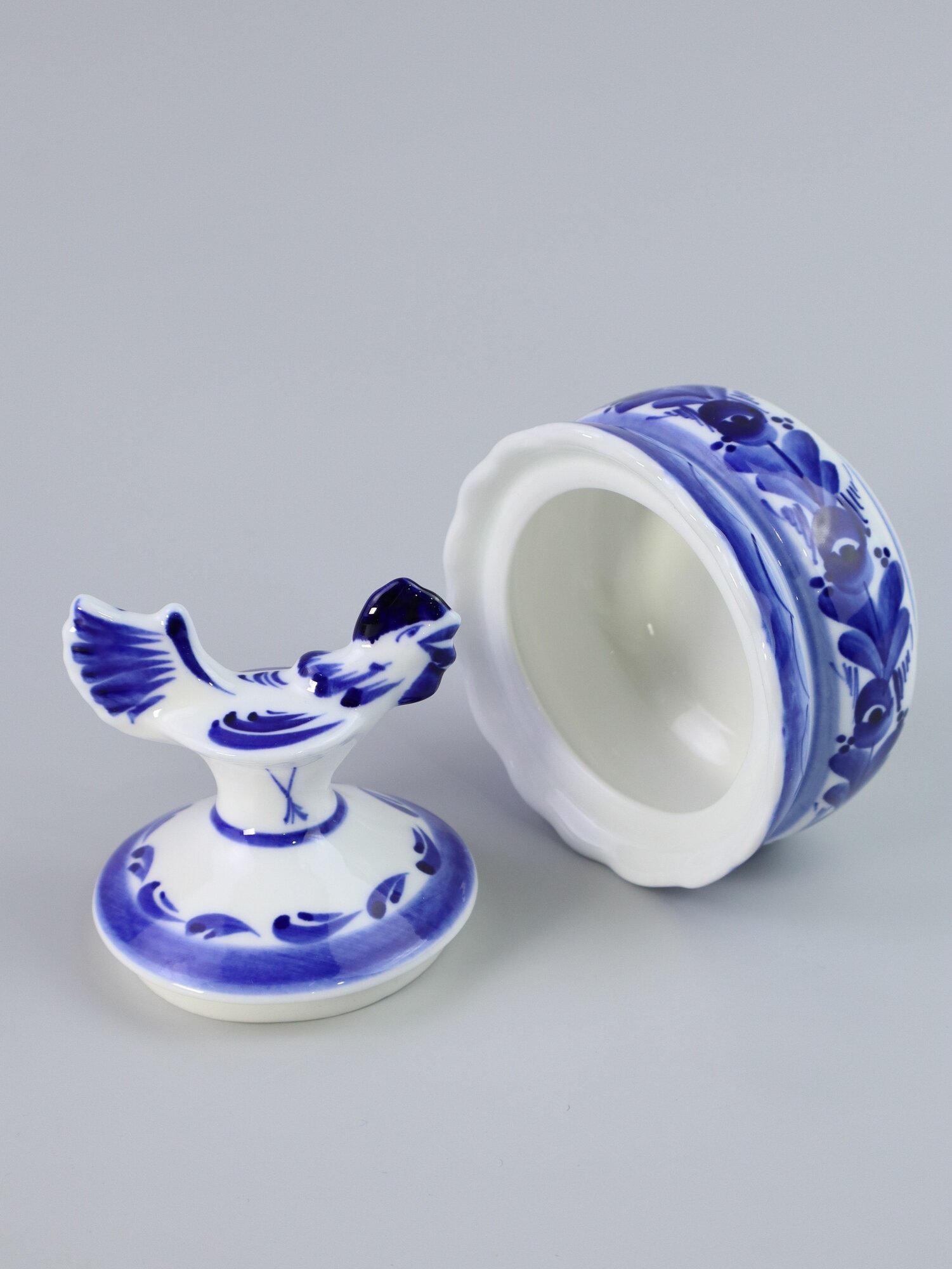 Купить Солонка "Петушок", высота 9,5 см. Ручная роспись. Фарфор. Объединение Гжель.
