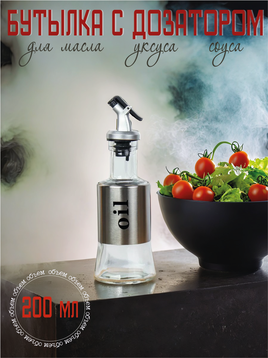 Бутылка для масла с дозатором, 200 мл, стекло, прозрачная с металлом интересное: