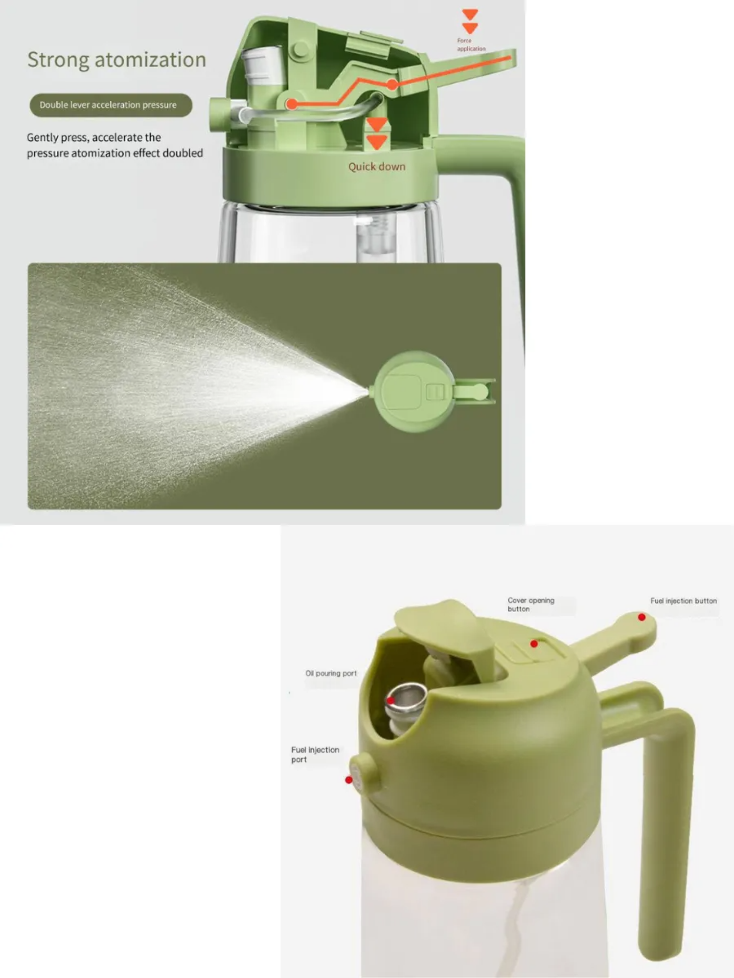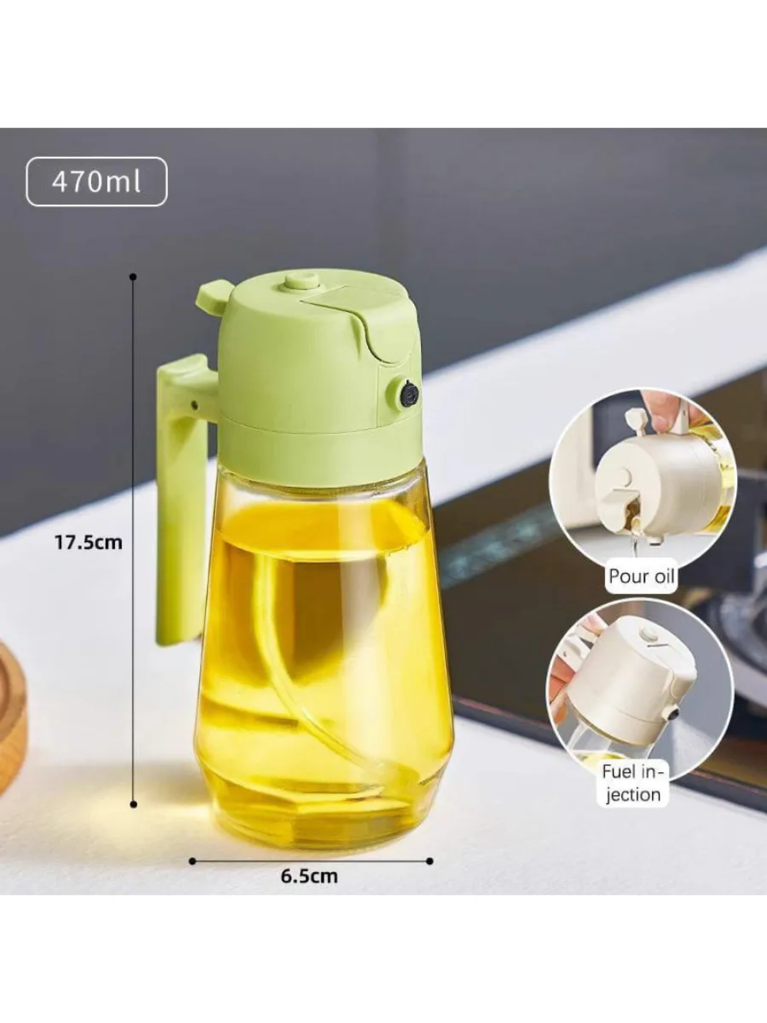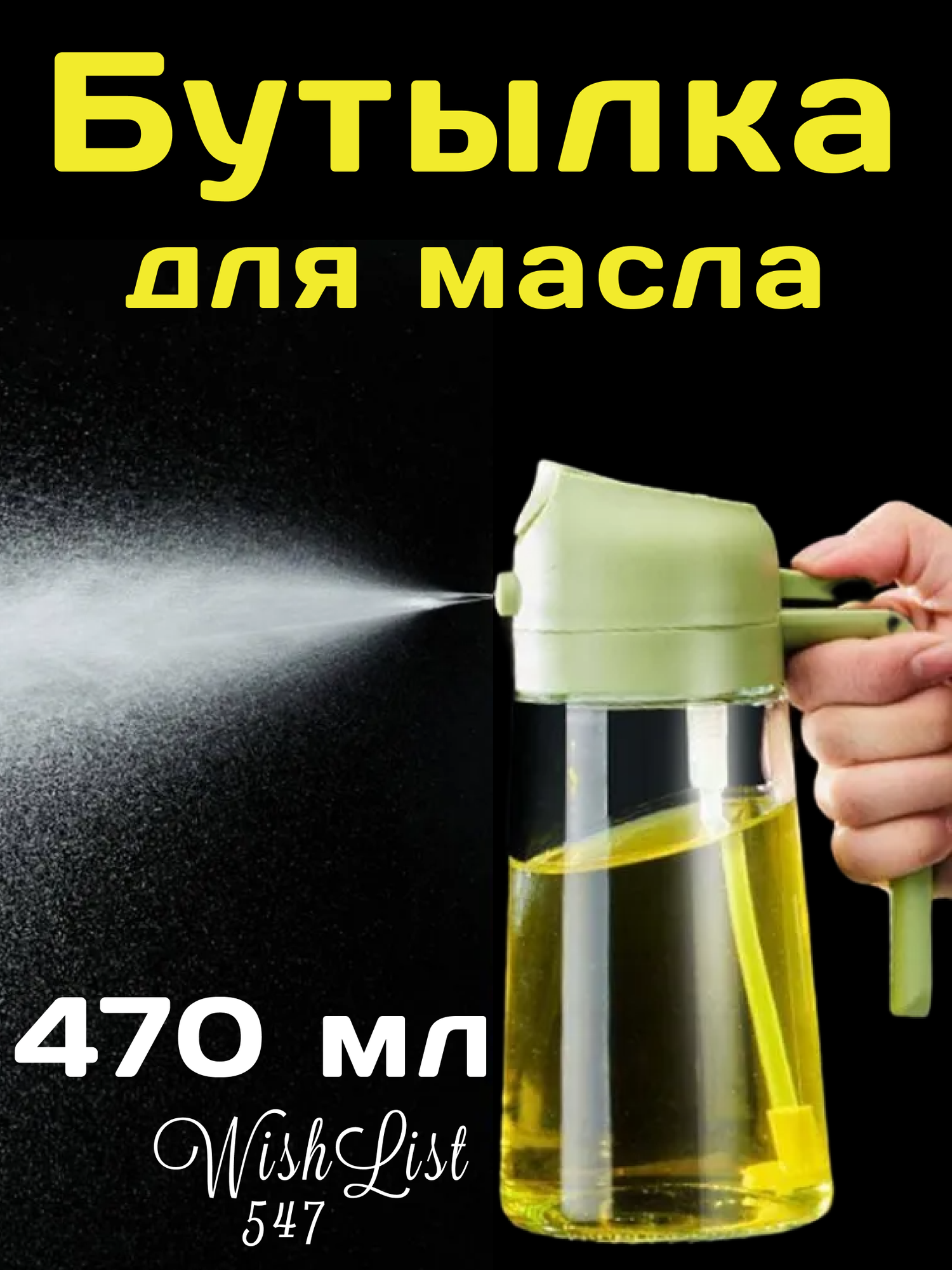 Бутылка емкость для масла, уксуса, соуса с дозатором и распылителем 2 в 1, 450 мл, зеленая интересное: