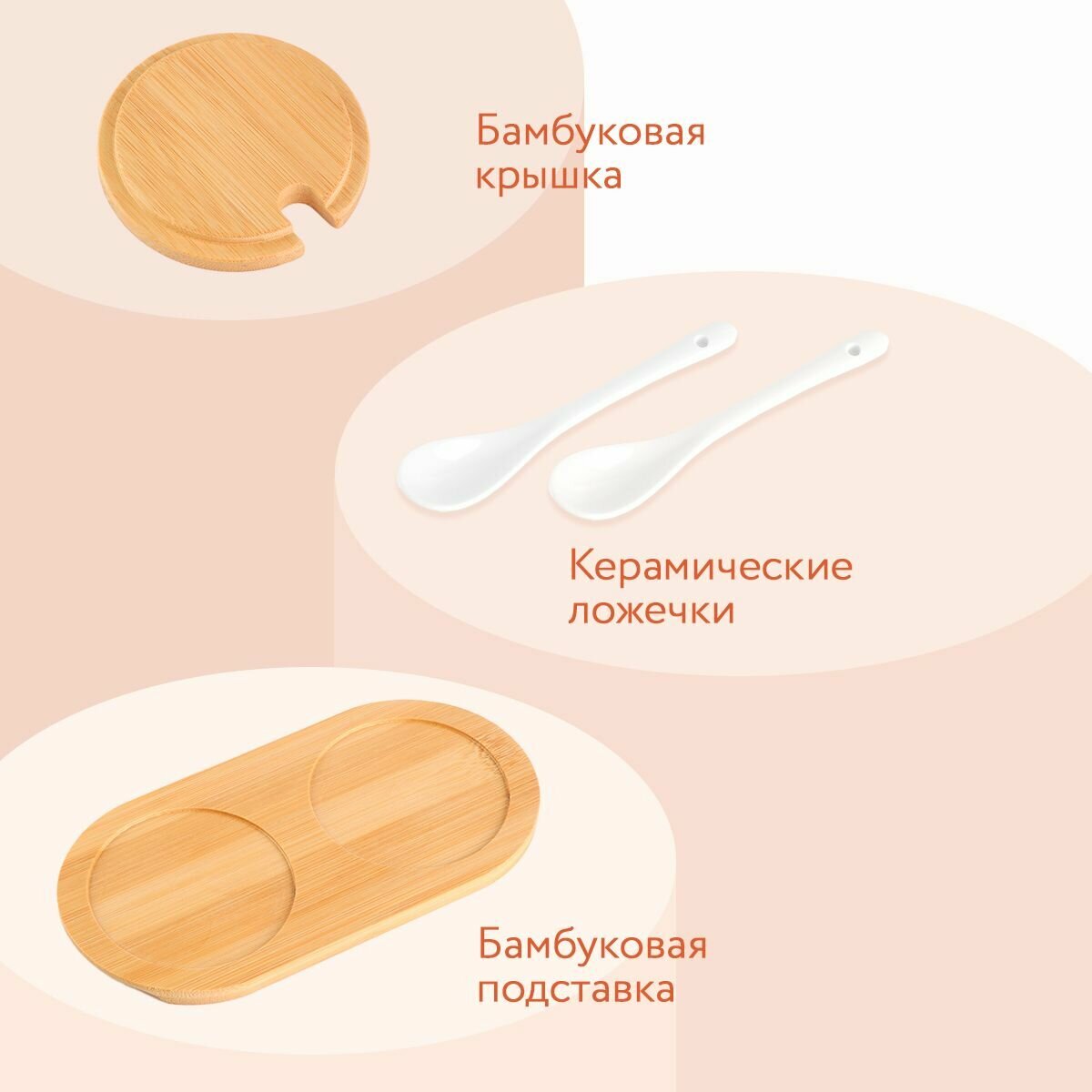 Набор для сахара и соли, сахарница и солонка на деревянной подставке Villa Como 2 в 1 интересное:
