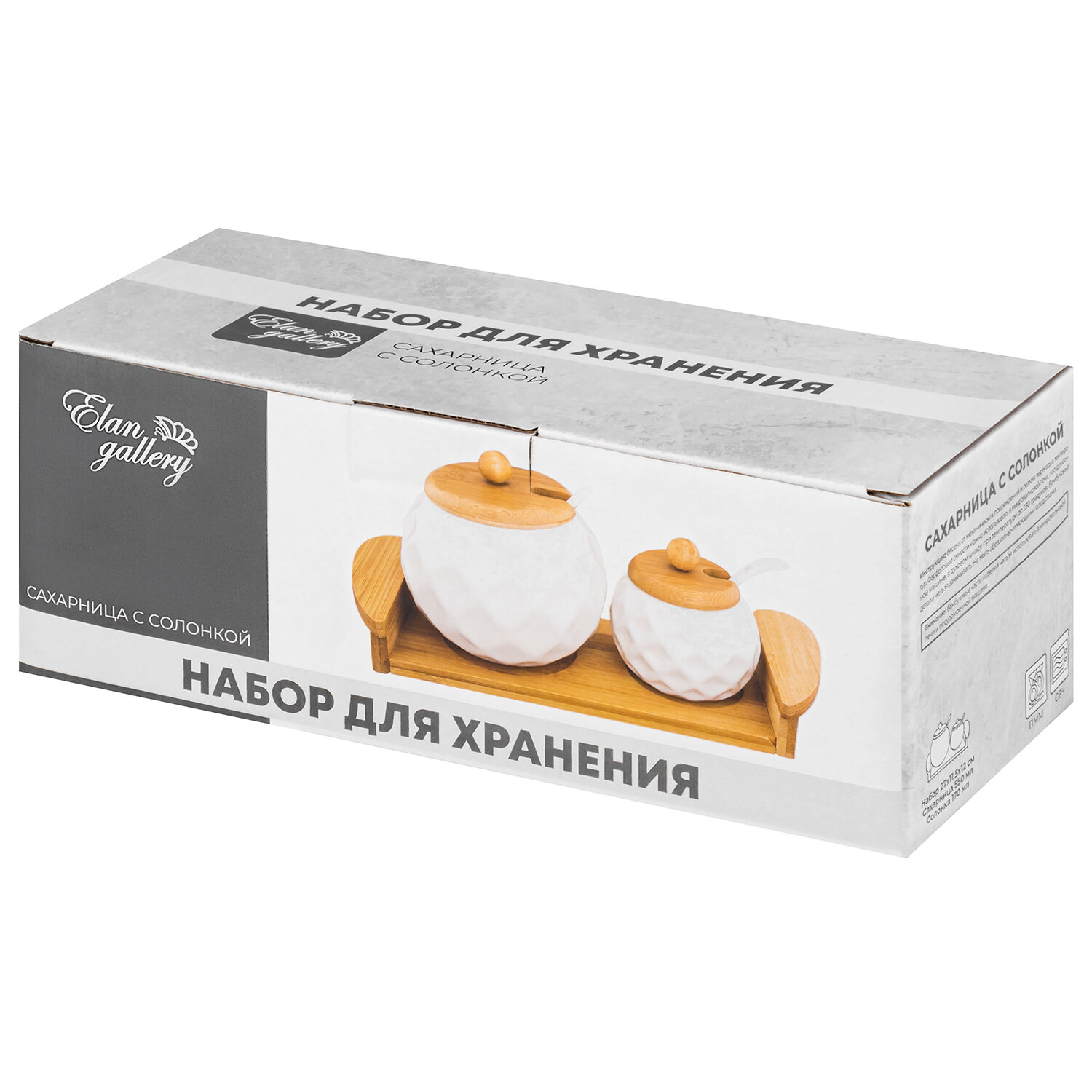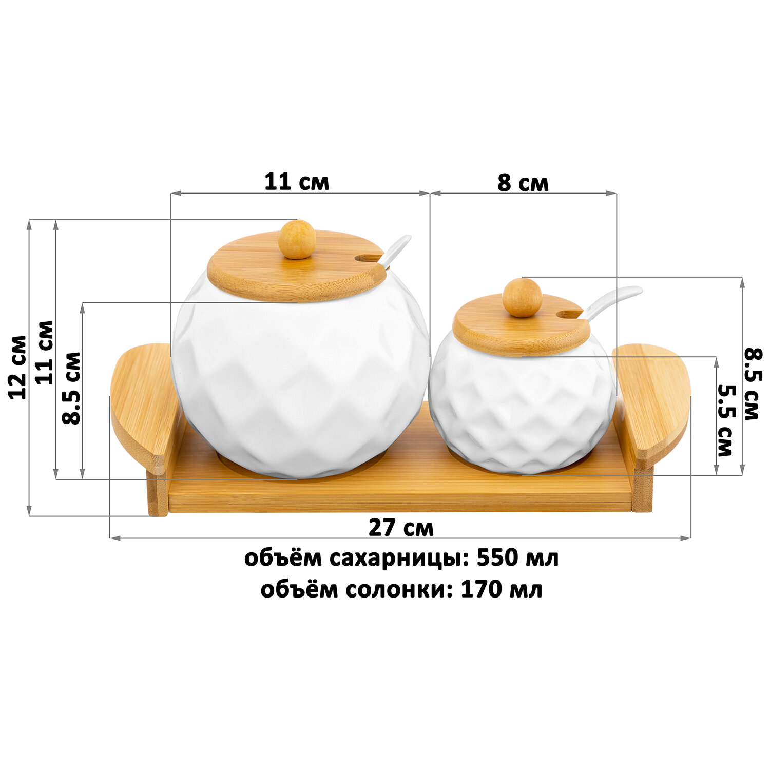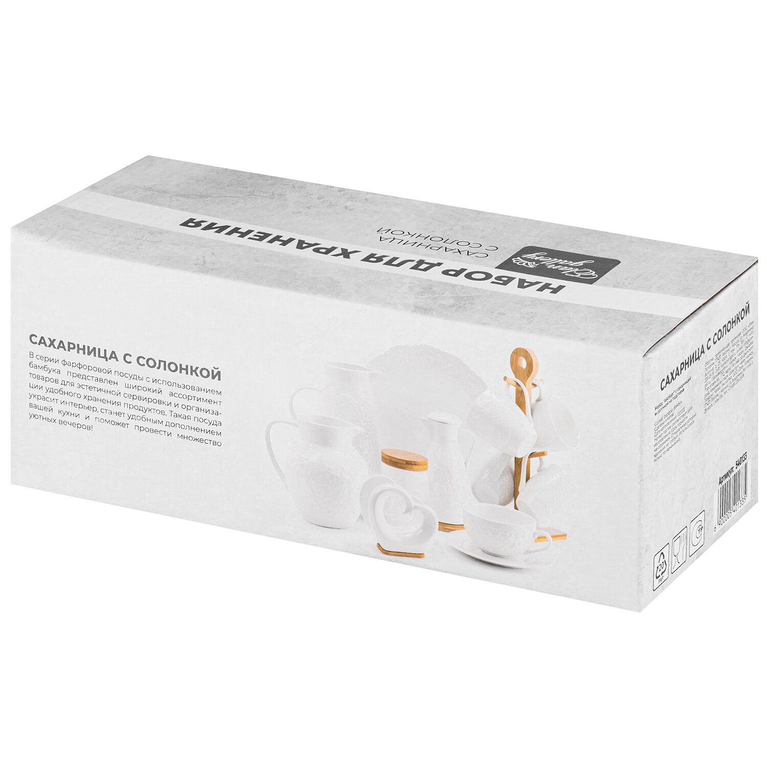 Набор - сахарница 550 мл + солонка 170 мл 27*11,5*12 см "Айсберг" + 2 ложки на дер. подст. интересное: