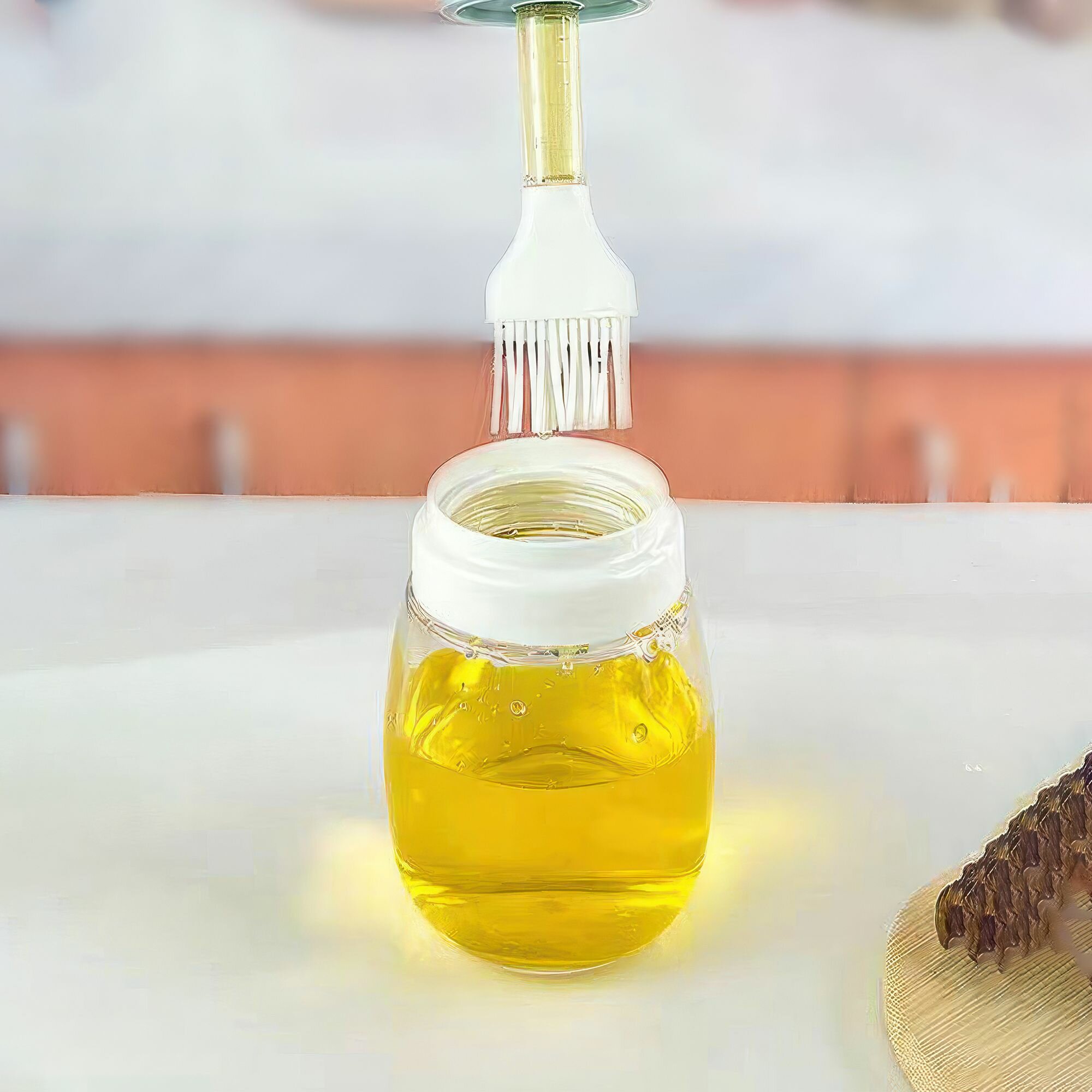 Стеклянная емкость с силиконовой кисточкой дозатором для растительного масла соуса уксуса. 280 мл интересное: