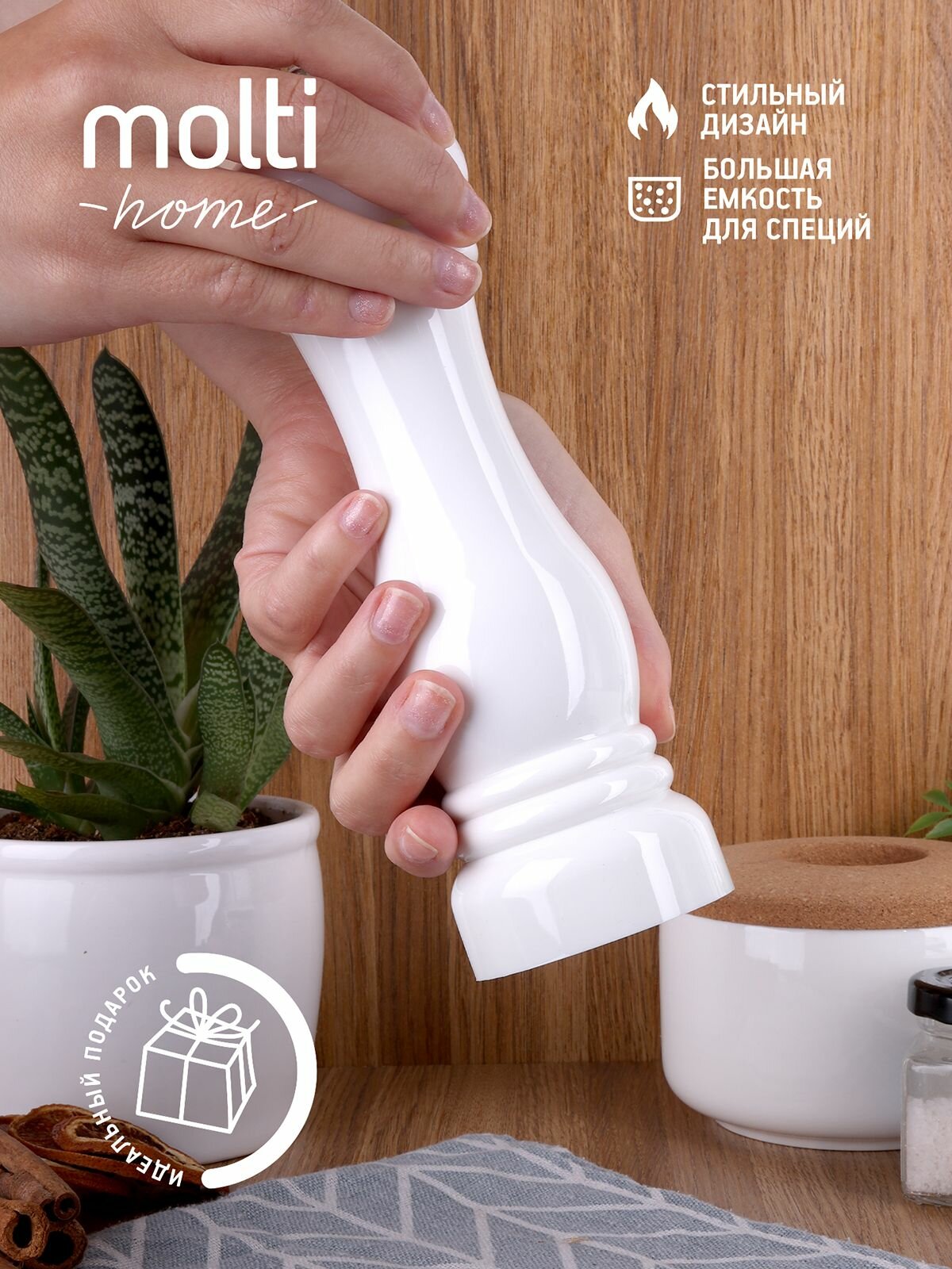 Мельница для специй соли перца электрическая перечница механическая Gambit, белая подарок девушке женщине маме подруге на 8 марта интересное: