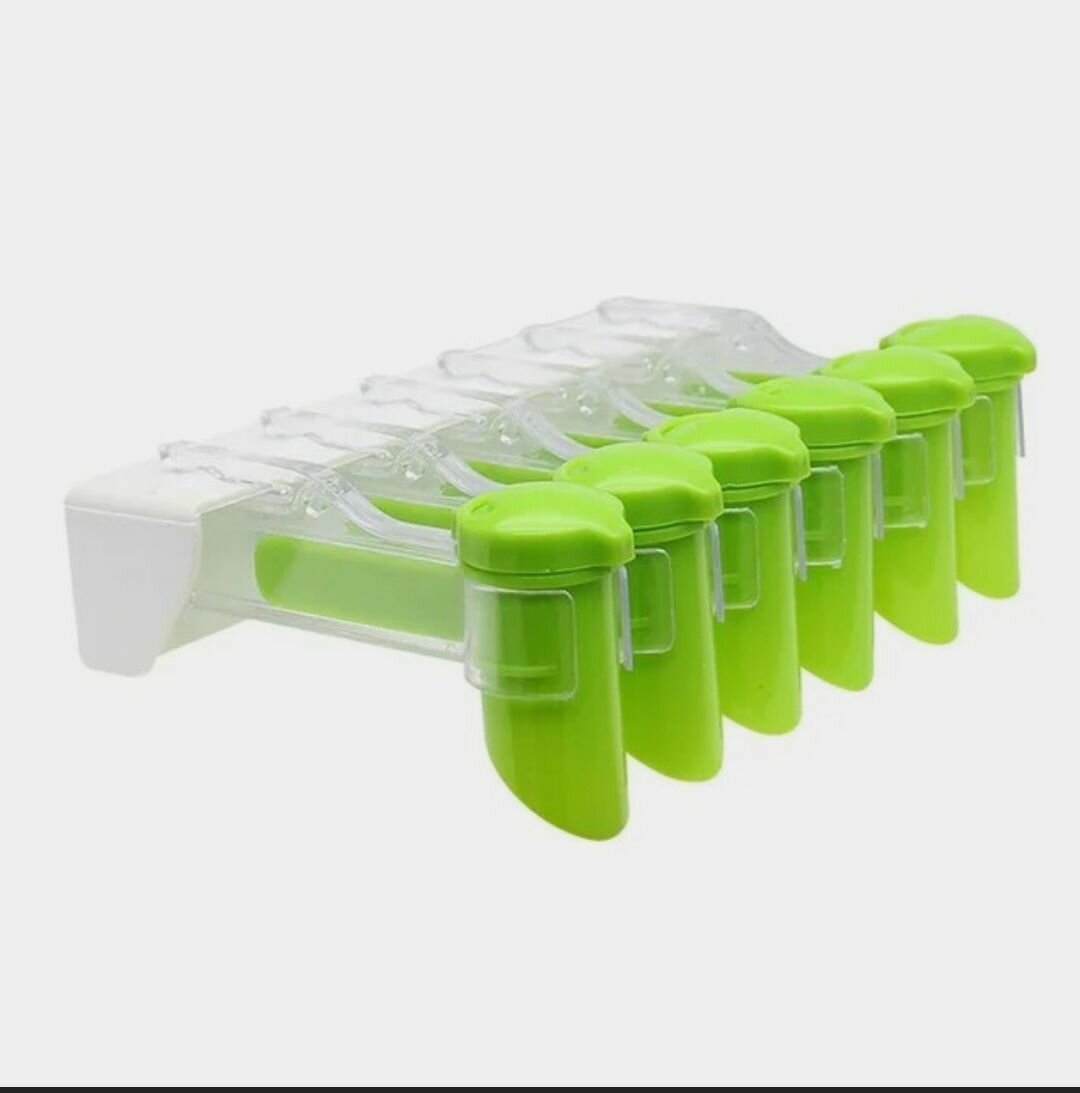 10 зажимов-держателей для вскрытых пакетов со специями, с крышками- дозаторами. интересное: