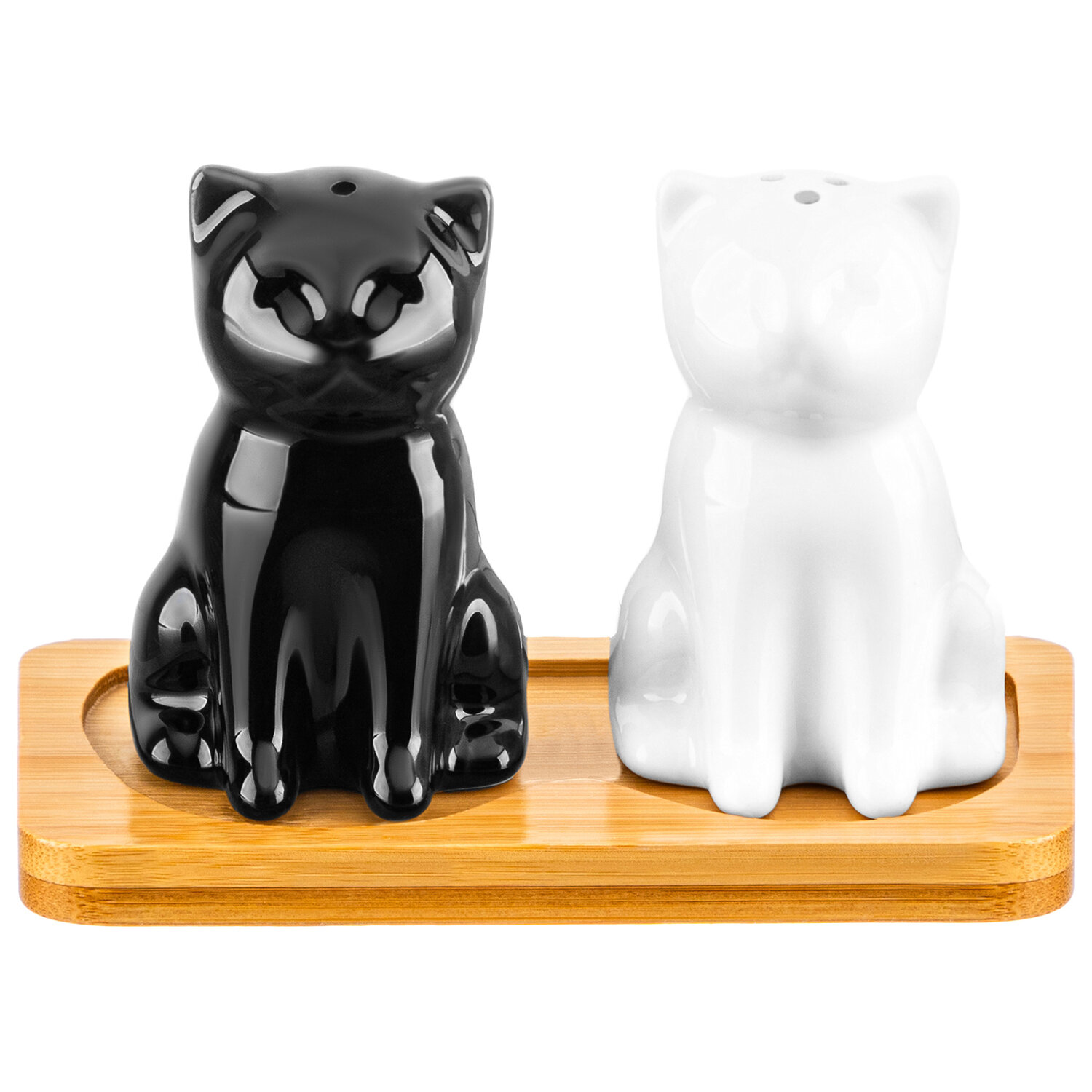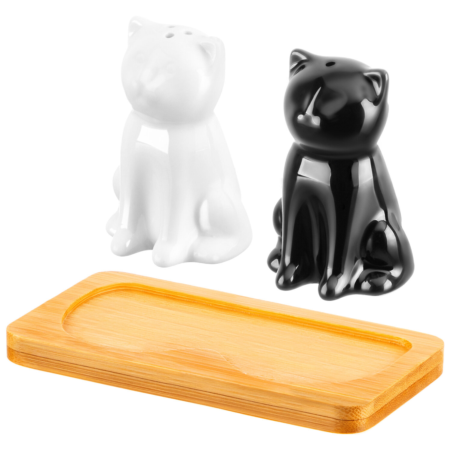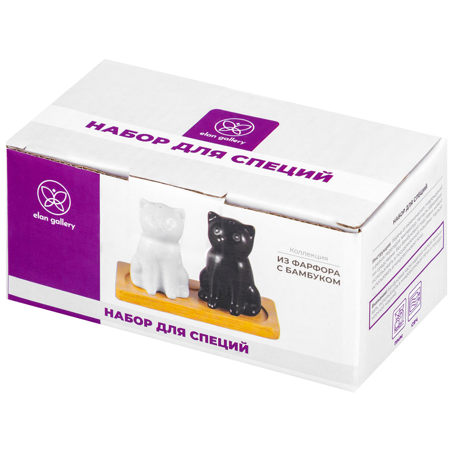 Набор для специй 2 предмета Elan Gallery Котики черно-белые на деревянной подставке интересное:
